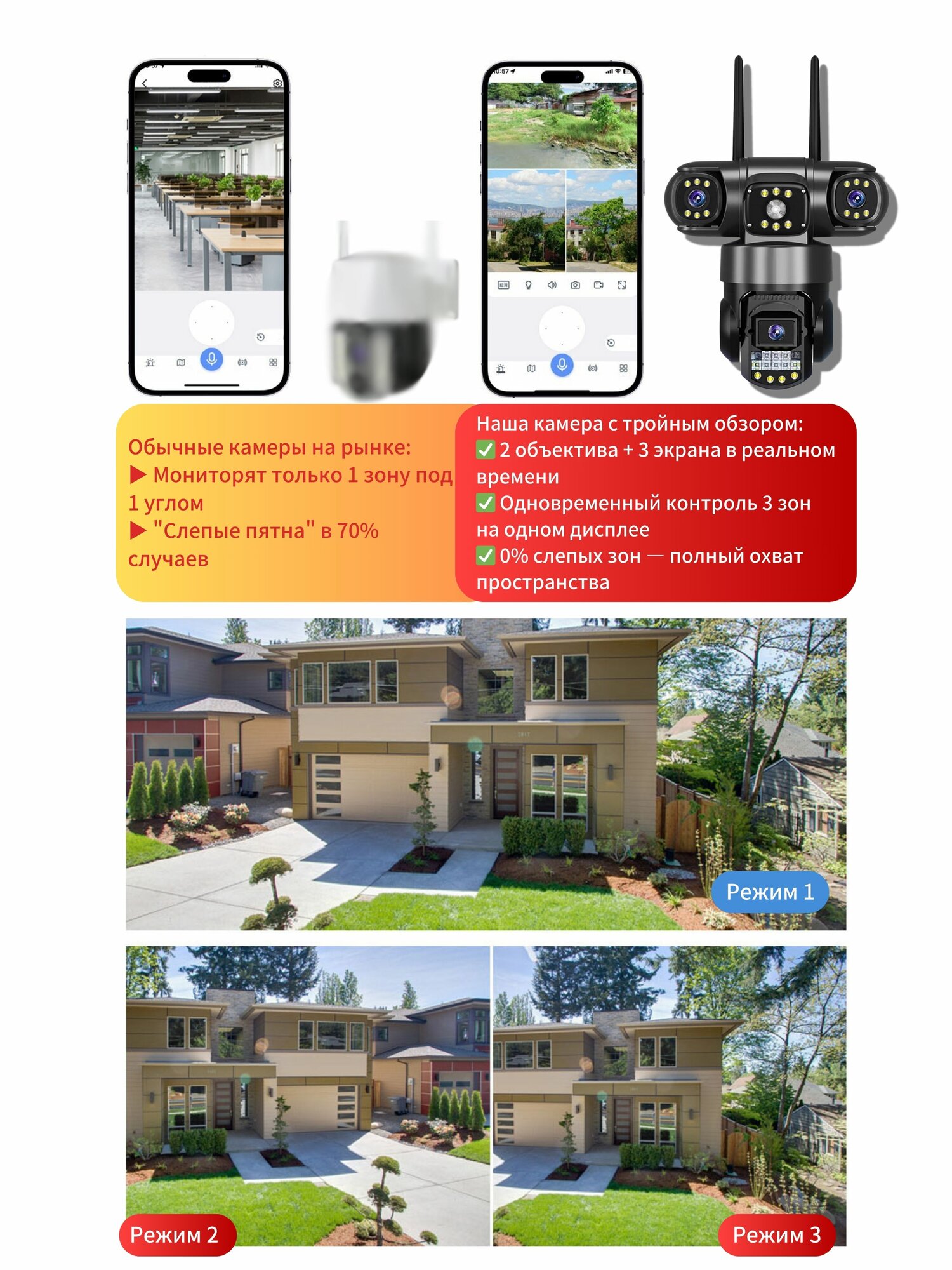Отзывы на 6MP уличная HD-камера видеонаблюдения с тройным объективом, ночным видением, 4G и удалённым управлением со смартфона