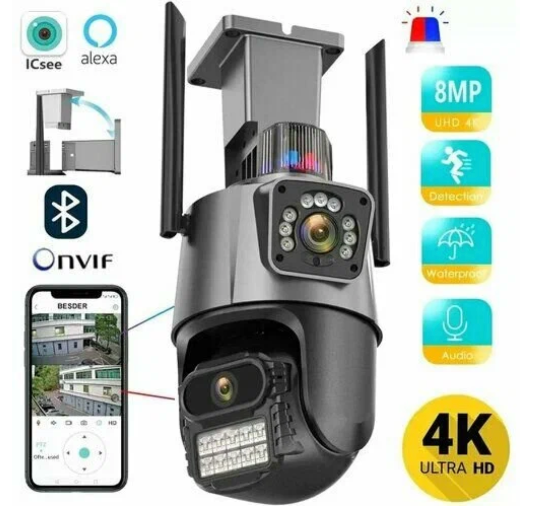 Уличная камера видеонаблюдения 2в1, зум 8х, 2 объектива, IP, Wi-Fi, ONVIF