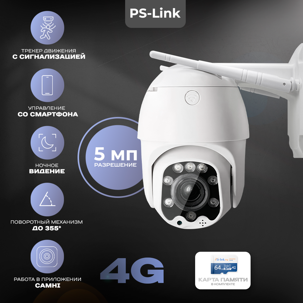 10 цен на Камера видеонаблюдения 4G с картой памяти 64ГБ 5Мп Ps-Link GBT50-SD