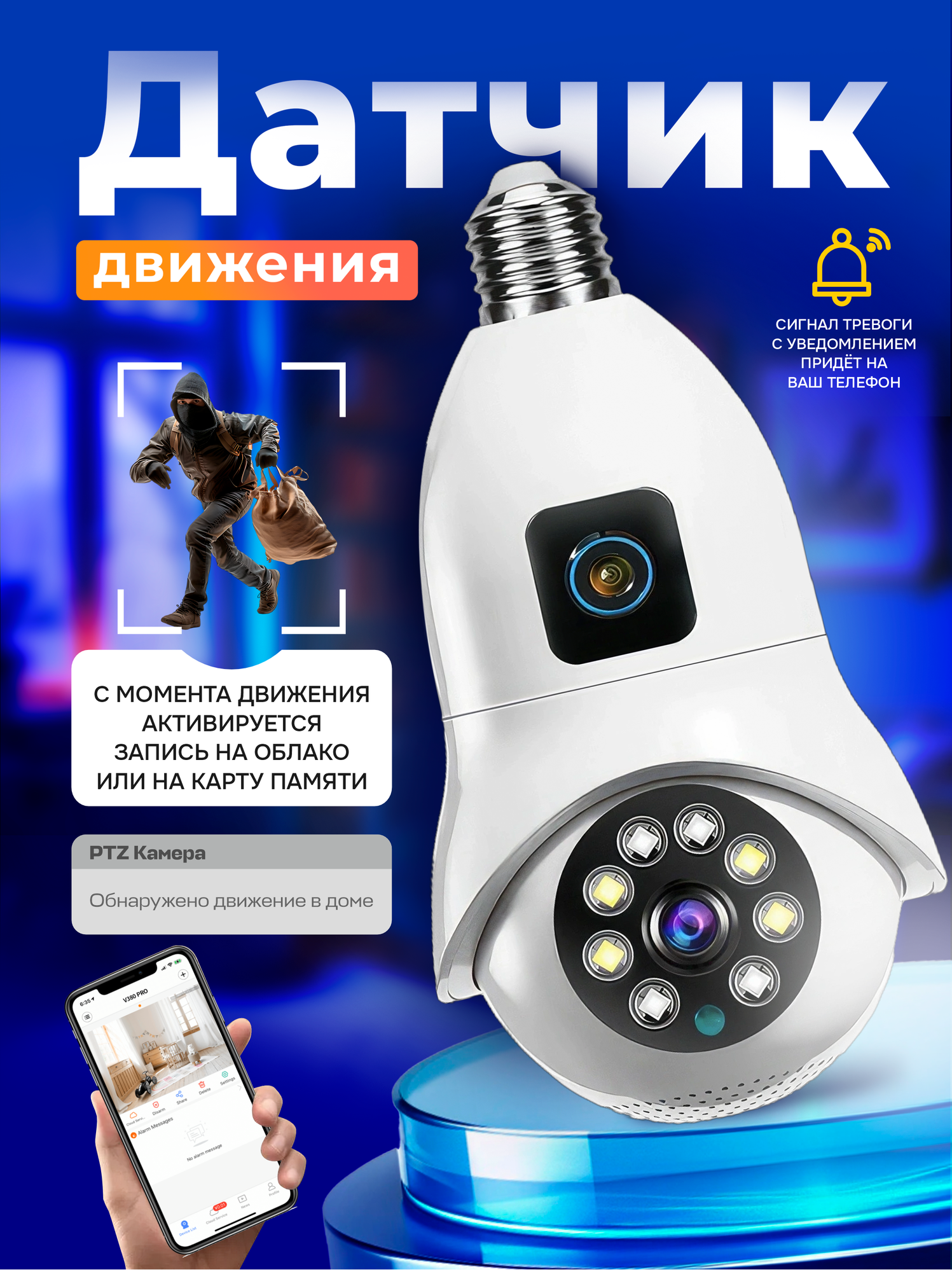 Камера видеонаблюдения лампочка с 2 объективами, Wi-Fi и ночным видением информация: