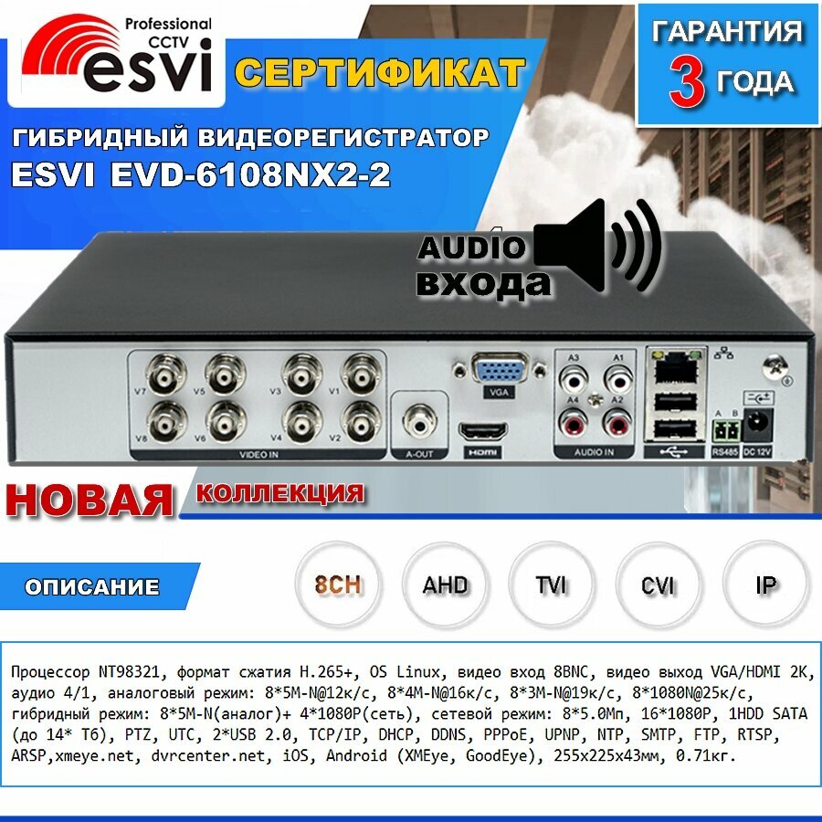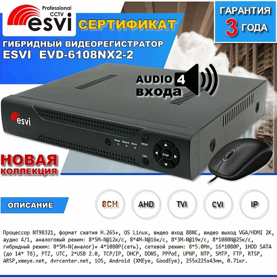 Видеорегистратор ESVI EVD-6108NX2-2 гибридный, цифровой информация: