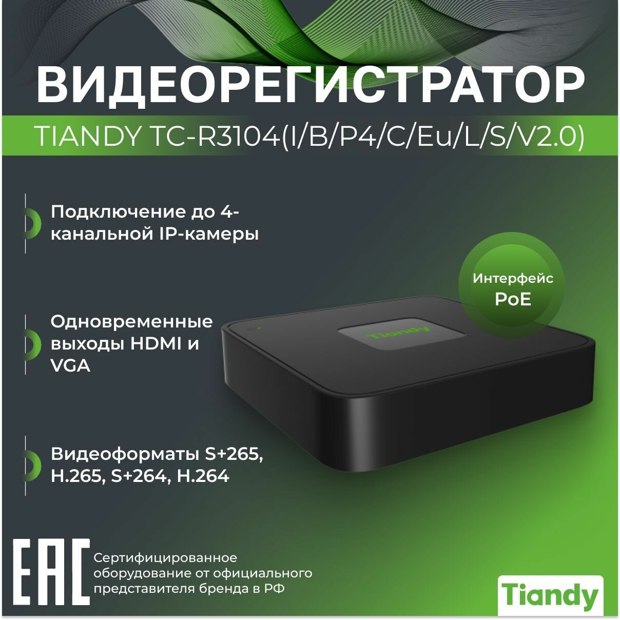 Видеорегистратор-IP TIANDY TC-R3104 I/B/P4/C/Eu/L/S/V2.0 информация: