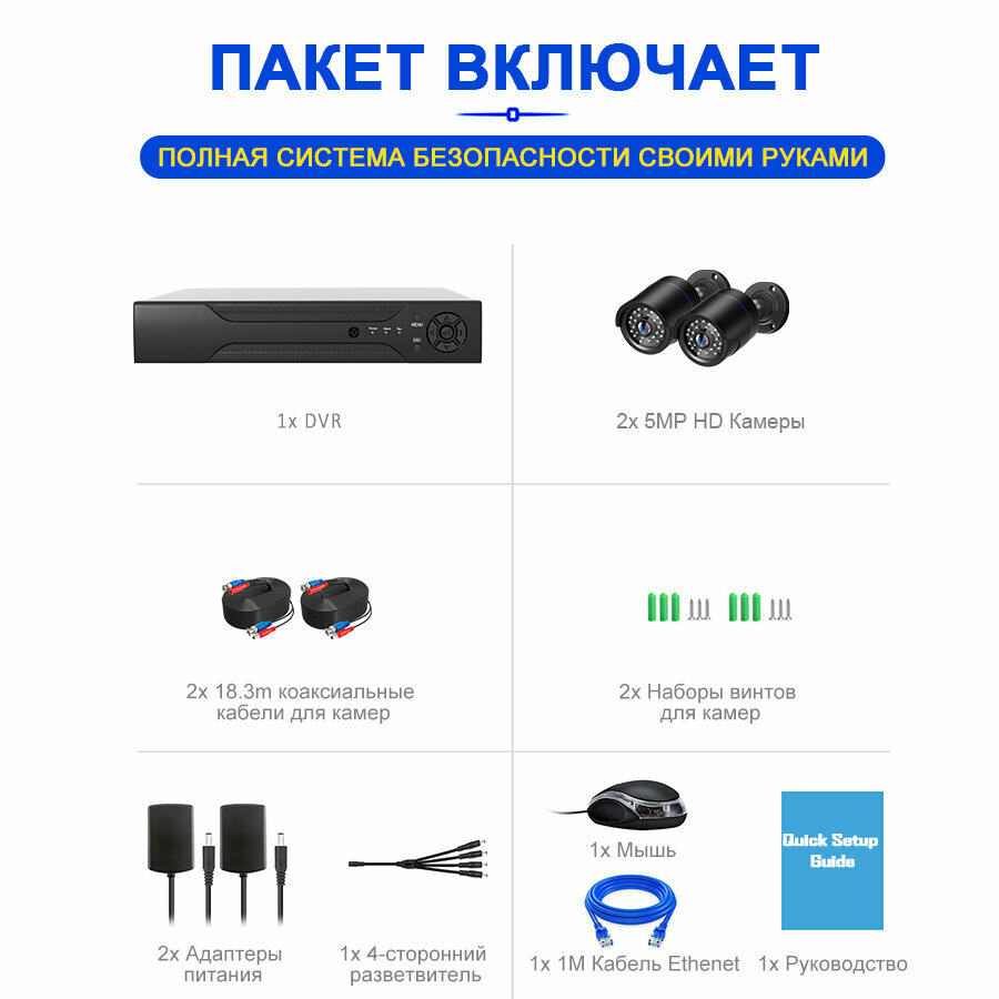 CAMSICA Комплект видеонаблюдения AHD 2 уличные камеры 5МП без жестким диском информация: