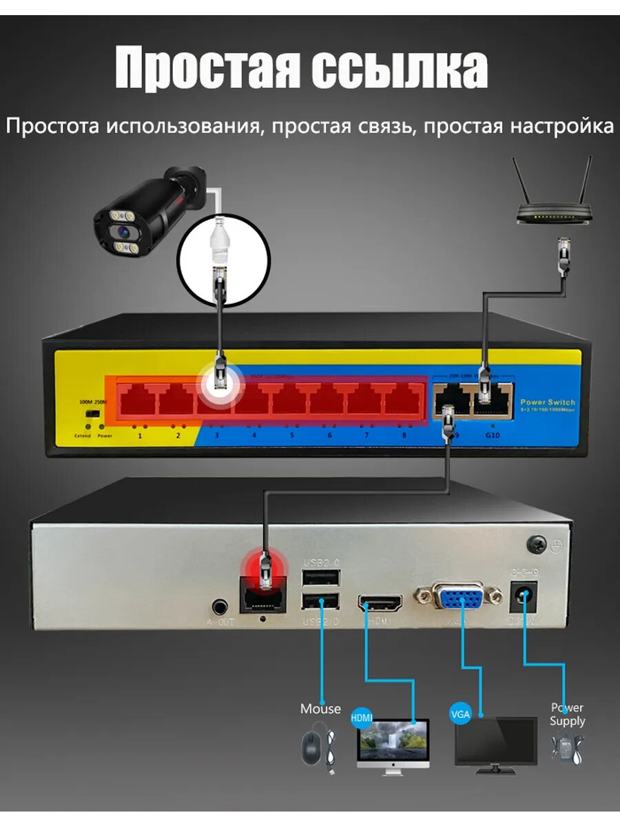 4K система видеонаблюдения комплект видеонаблюдения на 8 камер H.265 8-канальный NVR с PoE 8 Мп аудио 22 000 ₽