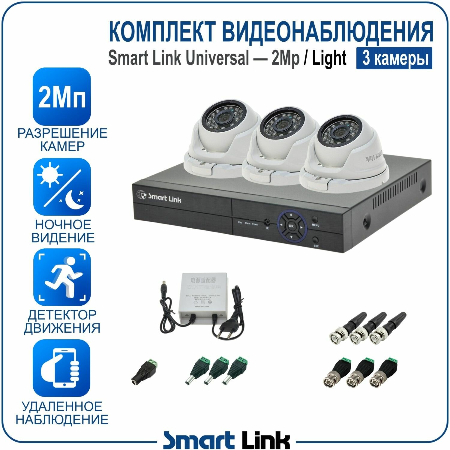 Отзывы на Готовый комплект видеонаблюдения 2Мп уличный, на 3 камеры, с записью на жёсткий диск до 8Tb, с удалённым просмотром. Smart Link SL-2M2N3M-L