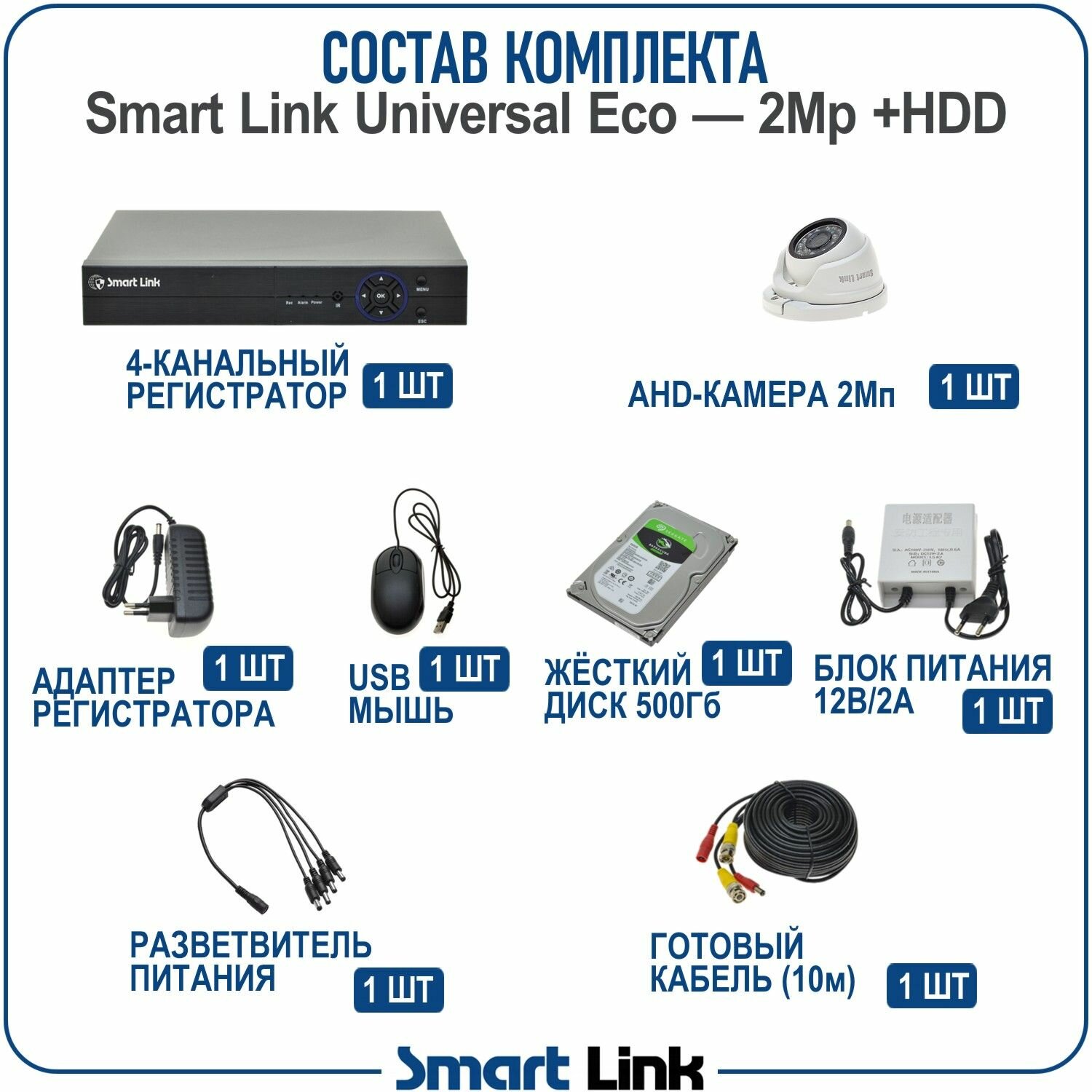 10 цен на Готовый комплект видеонаблюдения 2Мп уличный, на 1 камеру, с жёстким диском 500Gb, с удалённым просмотром, для дома, дачи, бизнеса. Smart Link SLE-2M2N1M-H