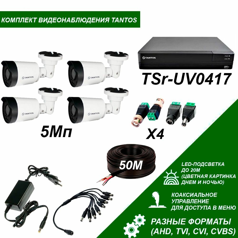 Комплект уличного видеонаблюдения TANTOS 5МП на 4 уличные камеры с цветной ночной съемкой информация: