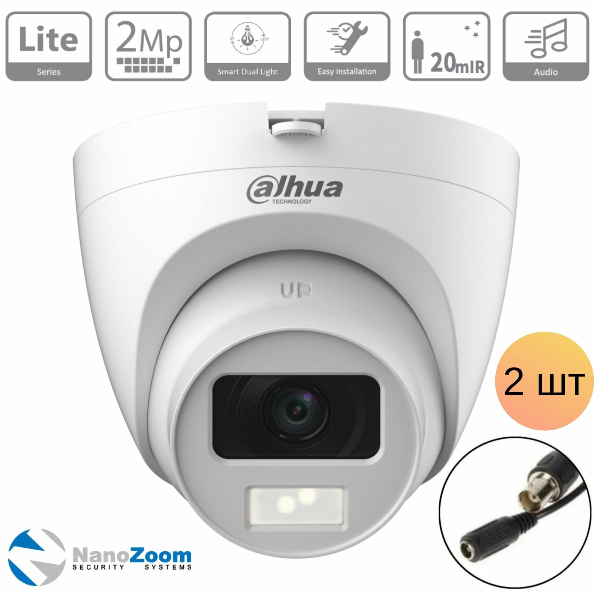 10 цен на Комплект видеонаблюдения Dahua из 2 купольных HDCVI камер 2Мп + гибридный видеорегистратор 4кн (HDW1200CLQP-IL-A-0280B-S6 + XVR5104C-I3)
