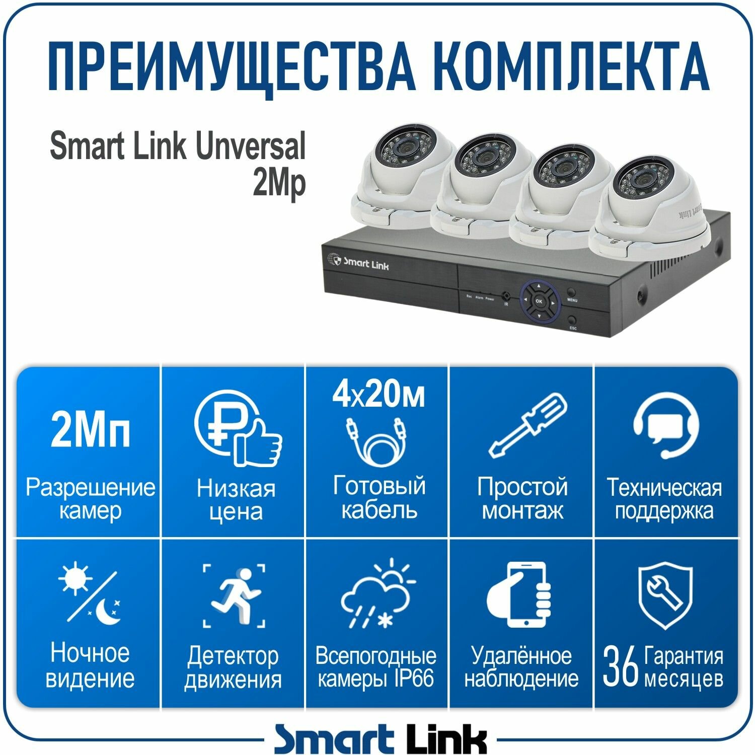 10 цен на Готовый комплект видеонаблюдения 2Мп уличный, на 4 камеры, с жёстким диском 500Gb, с удалённым просмотром, для дома, дачи, бизнеса. Smart Link SL-2M2N4M-H