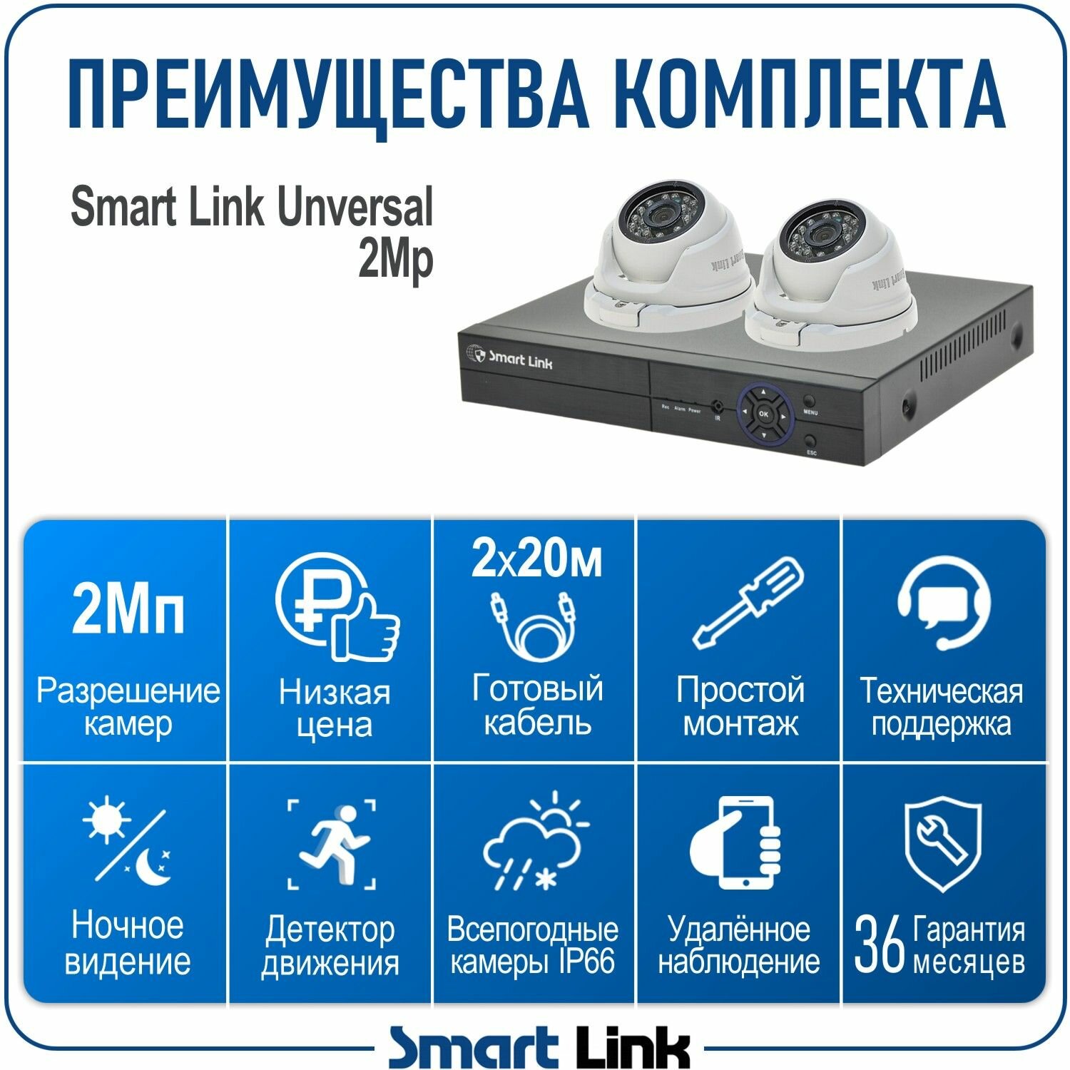 10 цен на Готовый комплект видеонаблюдения 2Мп уличный, на 2 камеры, с жёстким диском 500Gb, с удалённым просмотром, для дома, дачи, бизнеса. Smart Link SL-2M2N2M-H
