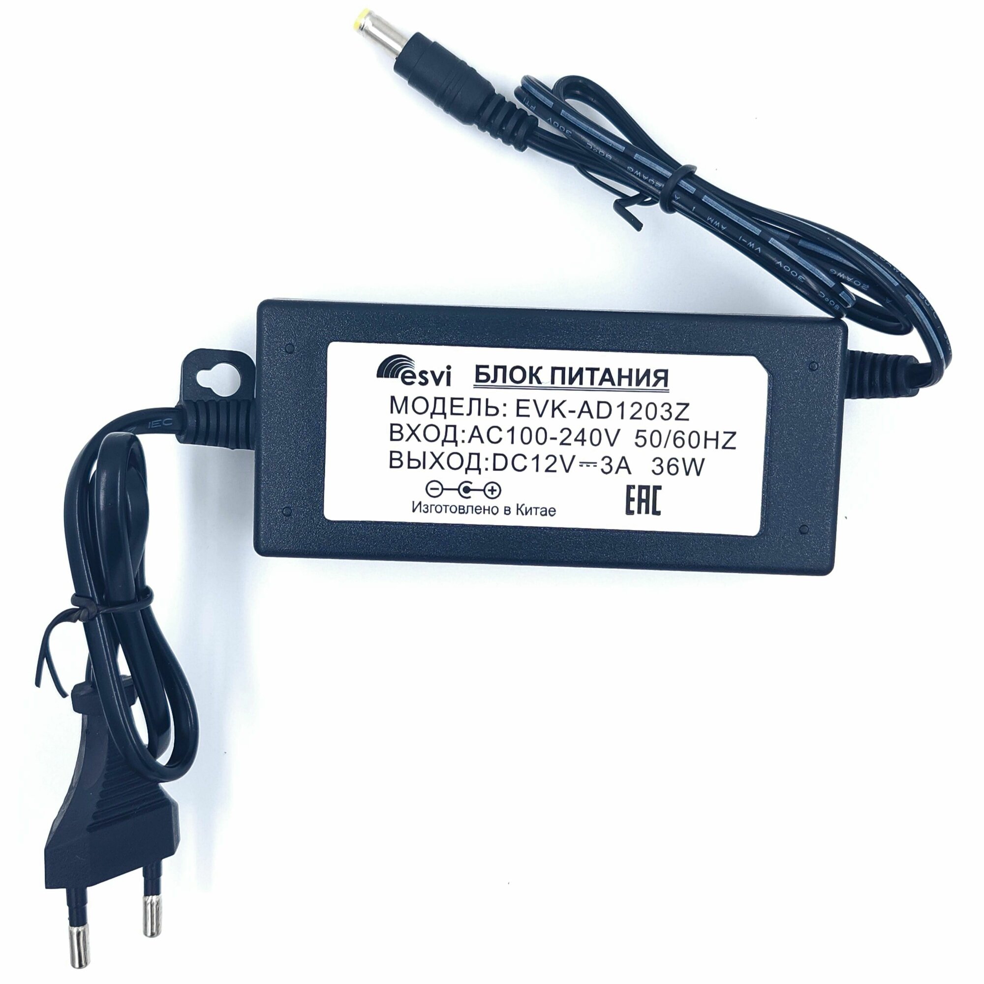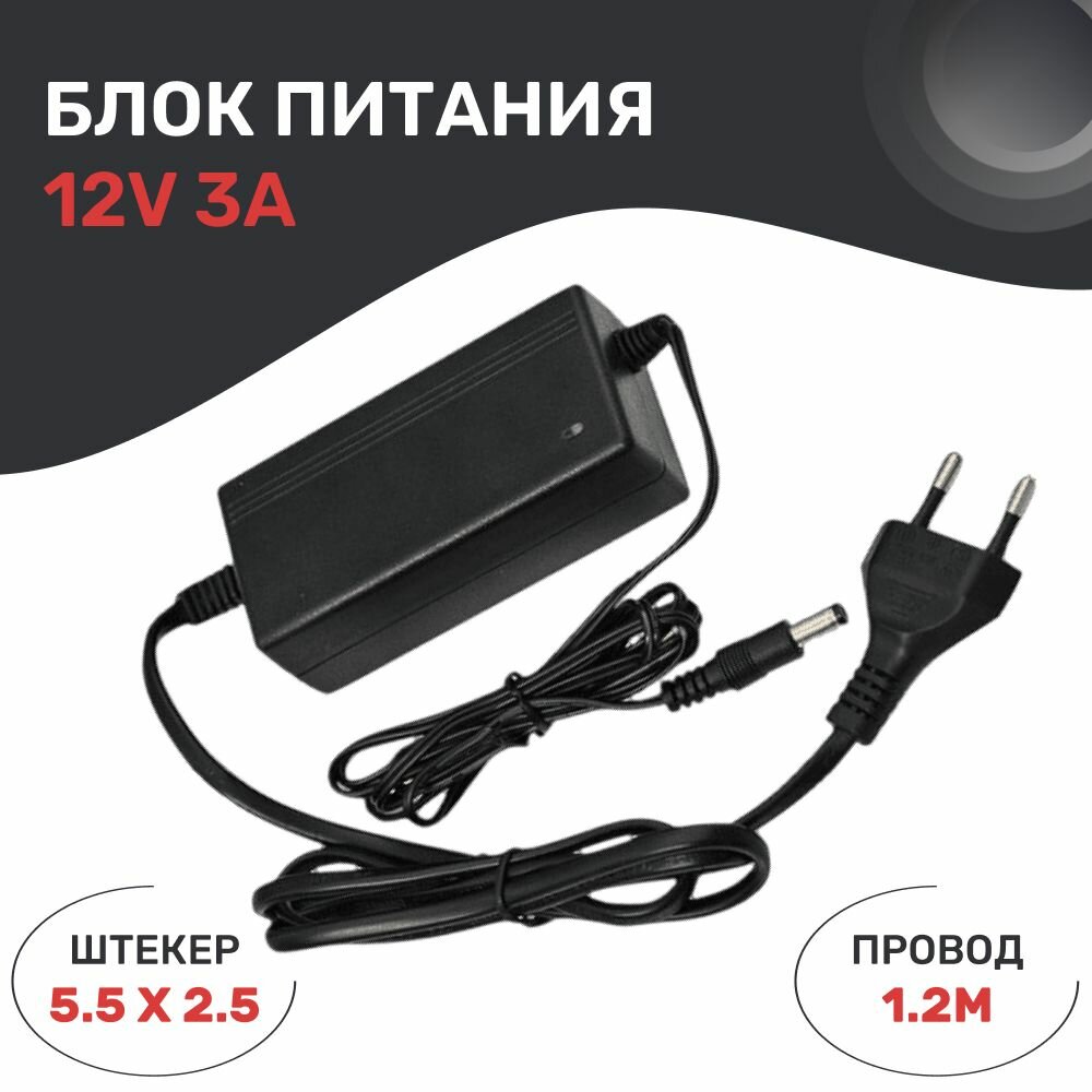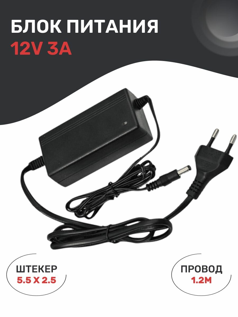 10 цен на Блок питания 12V 3А (12В 3А) стабилизированный. Штекер 5,5 х 2,5 для камер видеонаблюдения, светодиодных лент, триколор. EVK-AD1203Z