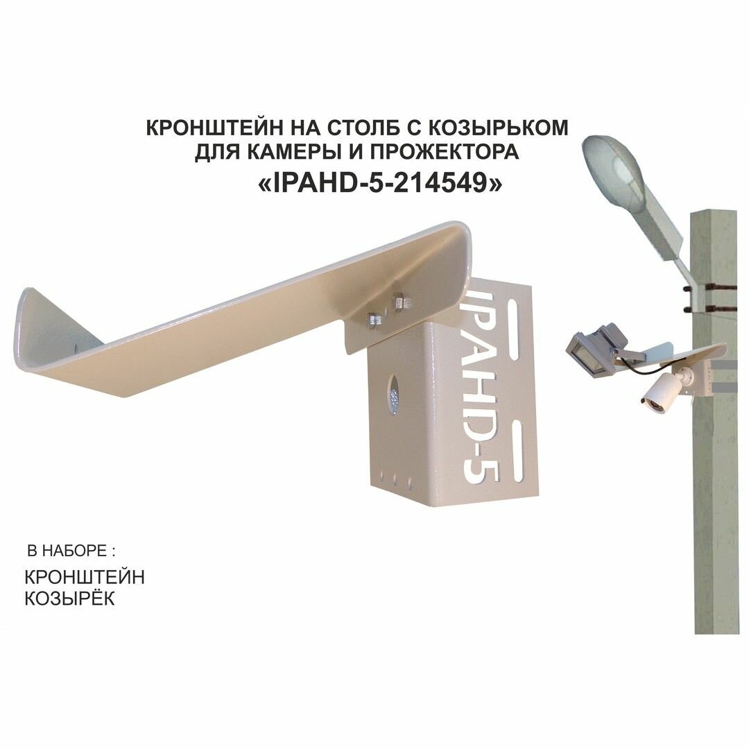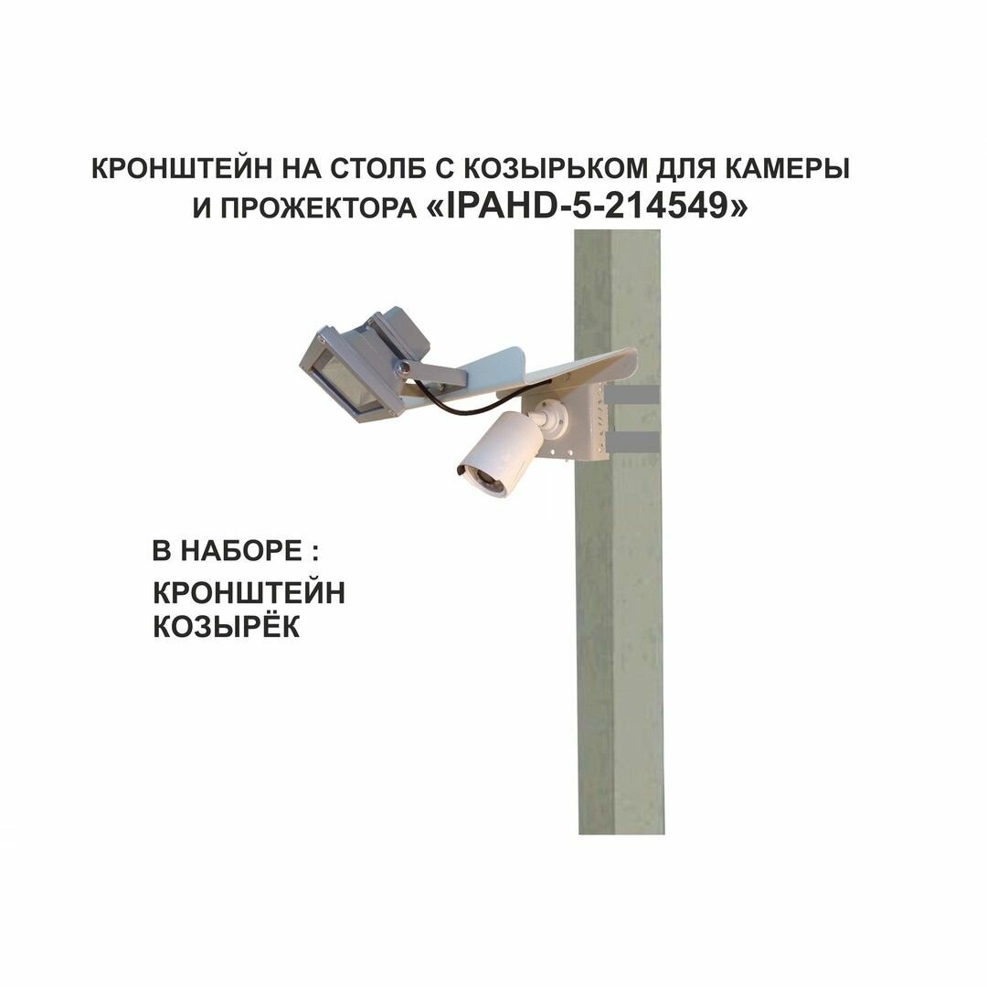 Кронштейн с козырьком для камеры и прожектора на столб MAIMA-214549 прочная сталь, цвет серый, защита от дождя и солнца информация: