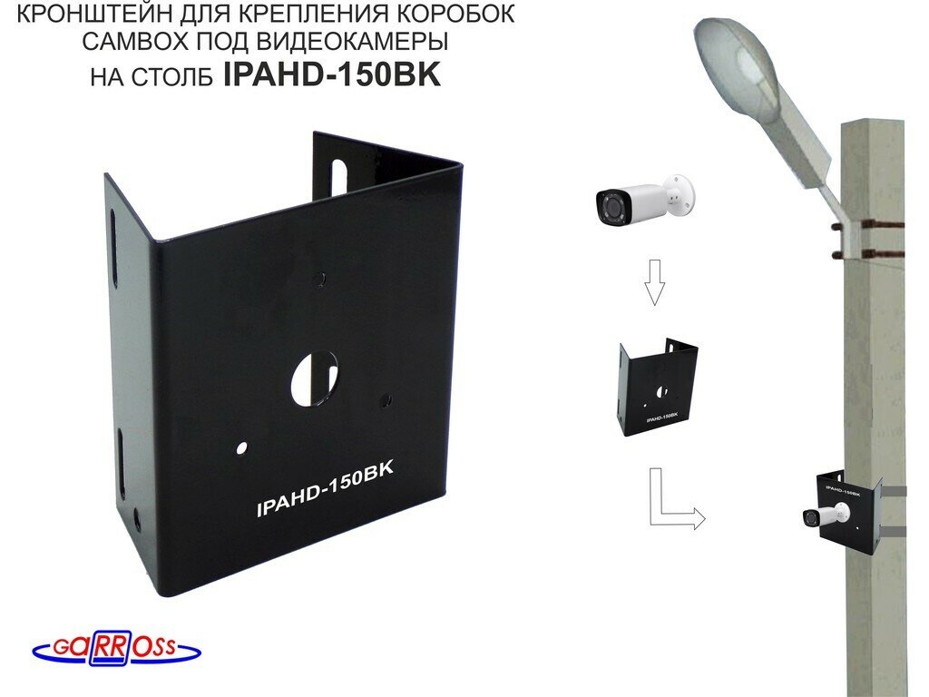 Кронштейн для видеокамеры на столб "IPAHD-150BK" чёрный под крепление гермо-коробок информация: