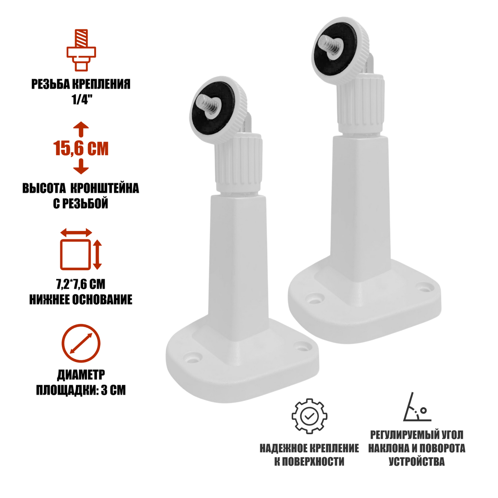 Отзывы на Пластиковый кронштейн крепление для камеры видеонаблюдения с резьбой 1/4, белый, 2 шт