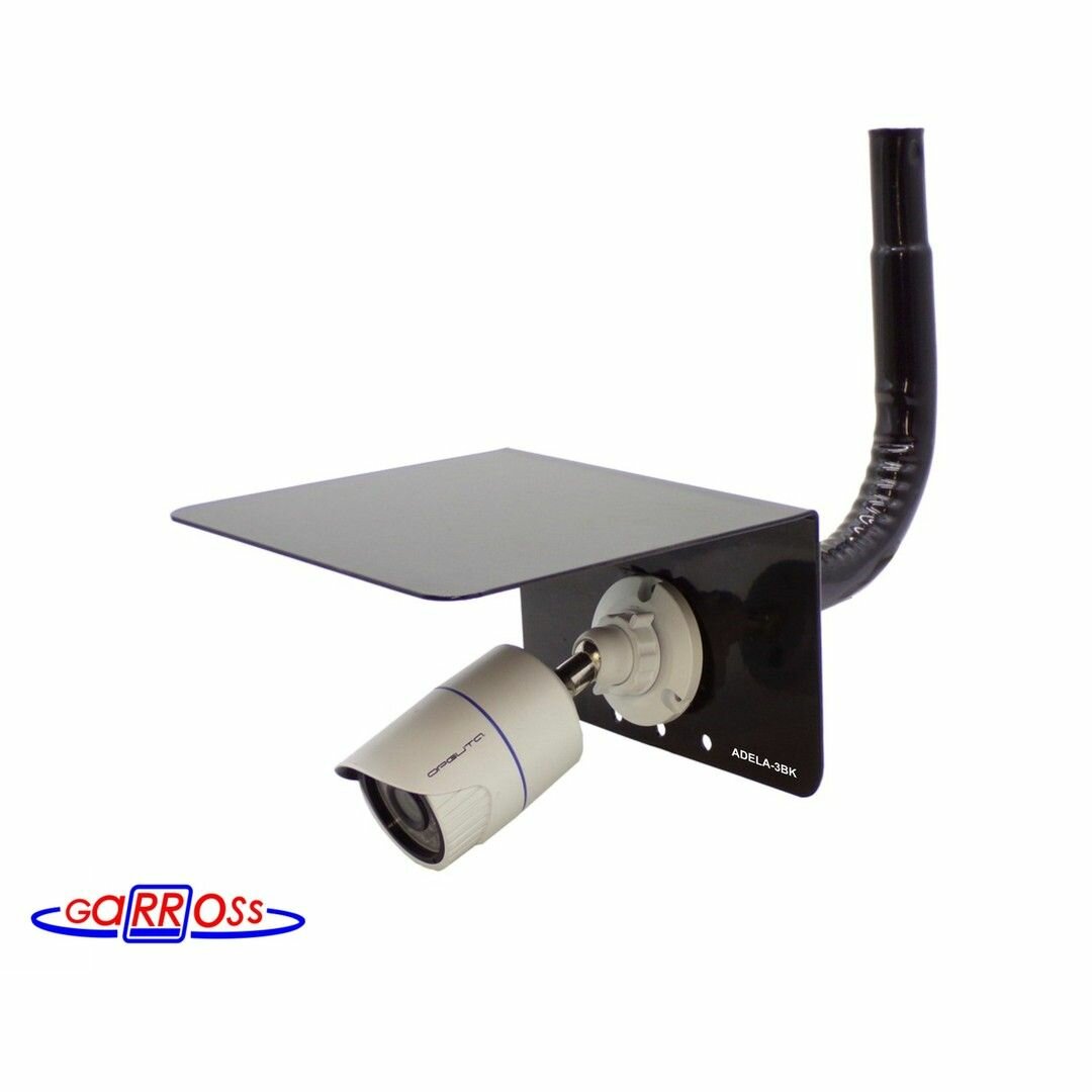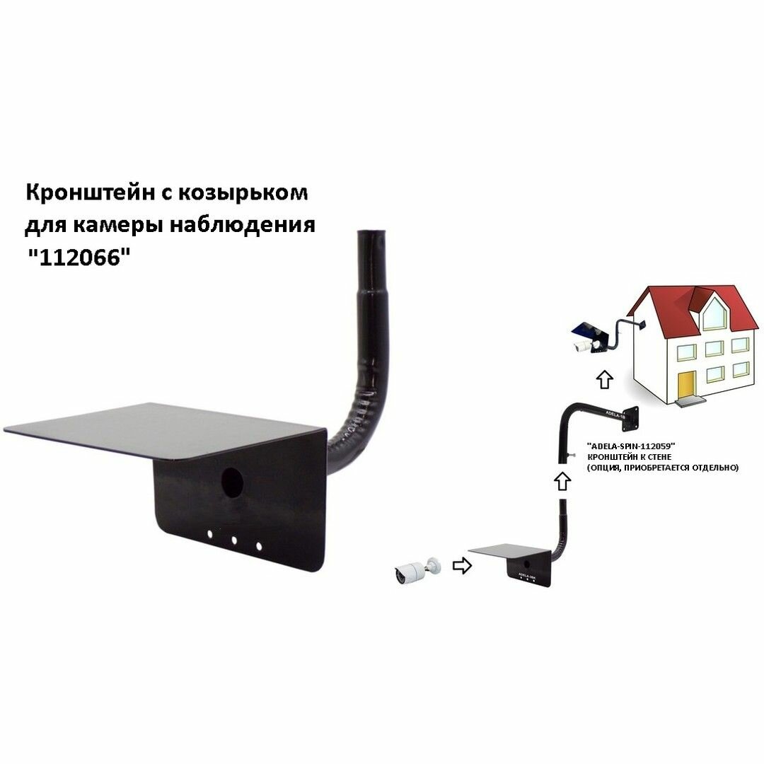10 цен на Кронштейн с козырьком для камеры видеонаблюдения "ADELA-SPIN-112066" прочная сталь, черный, вылет 25см, труба 32мм, обжатая
