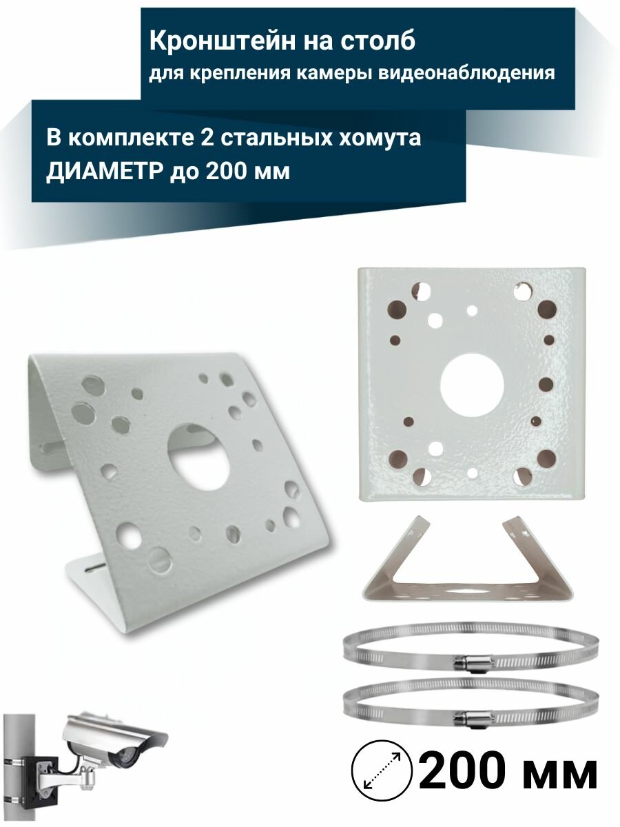 Кронштейн на столб для крепления камеры видеонаблюдения со стальными стяжками диаметр до 200мм информация: