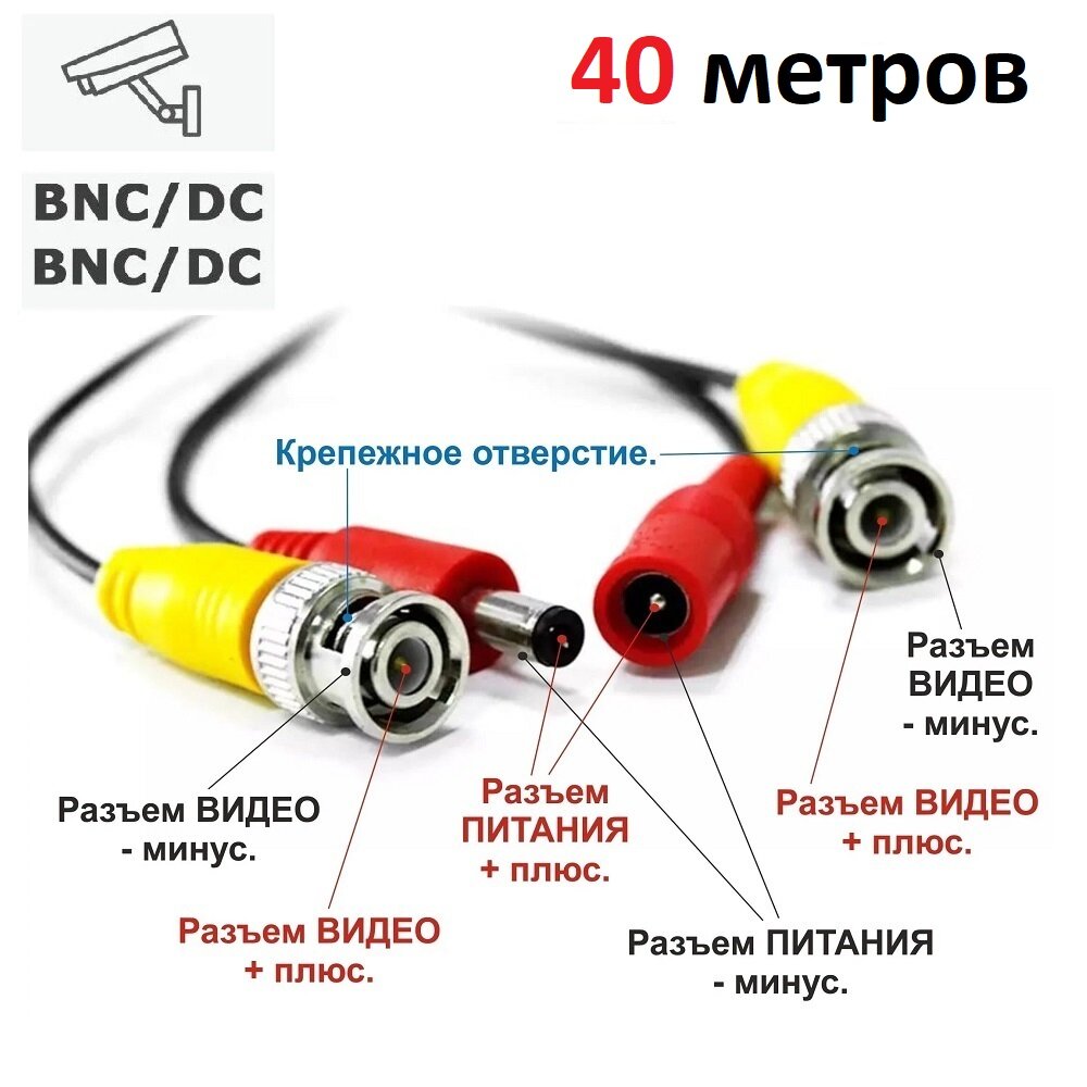 Кабель комбинированный для видеонаблюдения BNC/DC-BNC/DC 40 метров информация:
