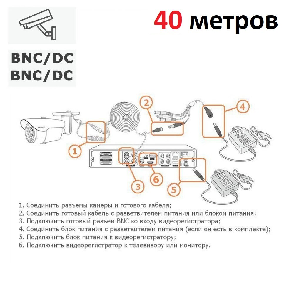 10 цен на Кабель комбинированный для видеонаблюдения BNC/DC-BNC/DC 40 метров