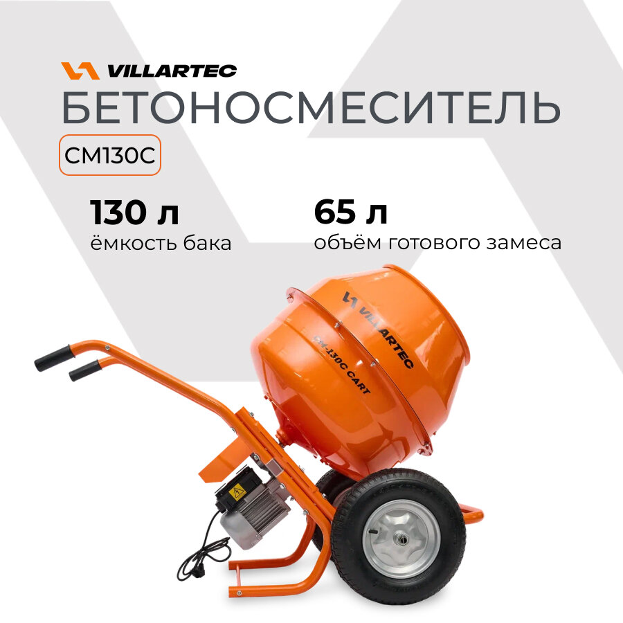 10 цен на Бетономешалка VILLARTEC, CM-130С CART, 130 л