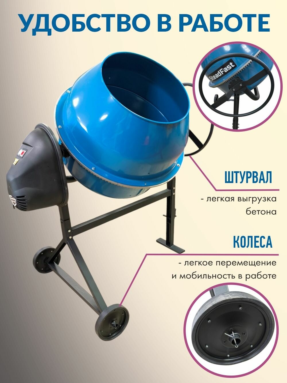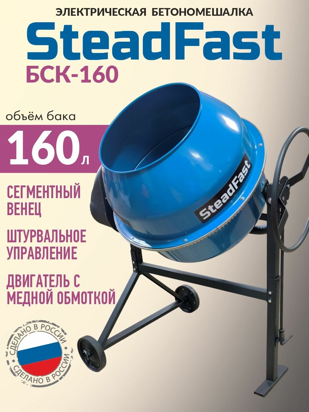 Бетономешалка строительная SteadFast БСК-160, объем 160 л, бетоносмеситель электрический 600 Вт, металлический венец информация: