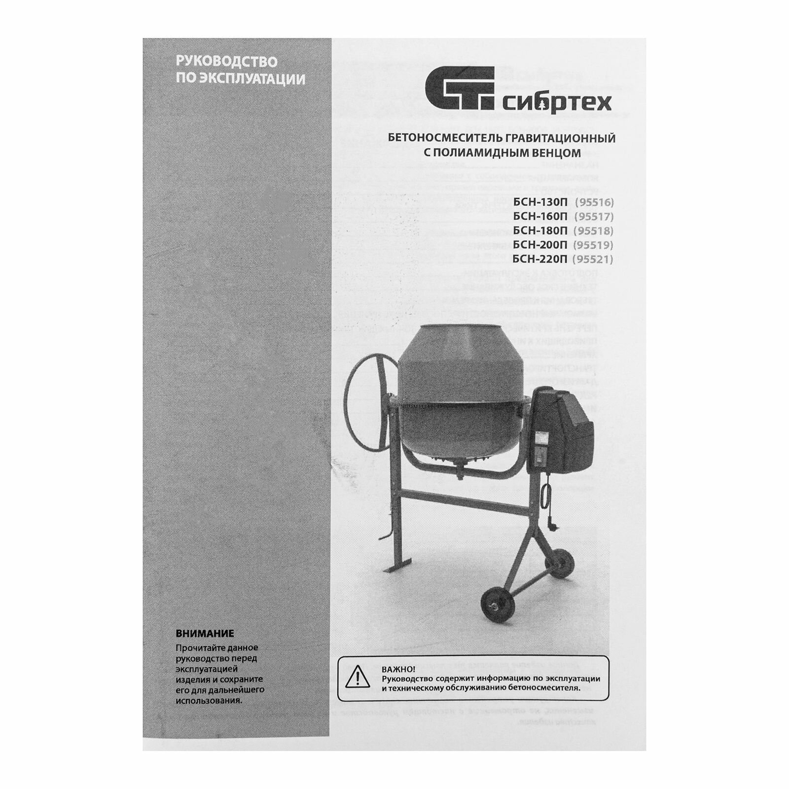 Бетоносмеситель БСН-160П, мощность 500 Вт, полиамидный венец Сибртех, 95517 информация: