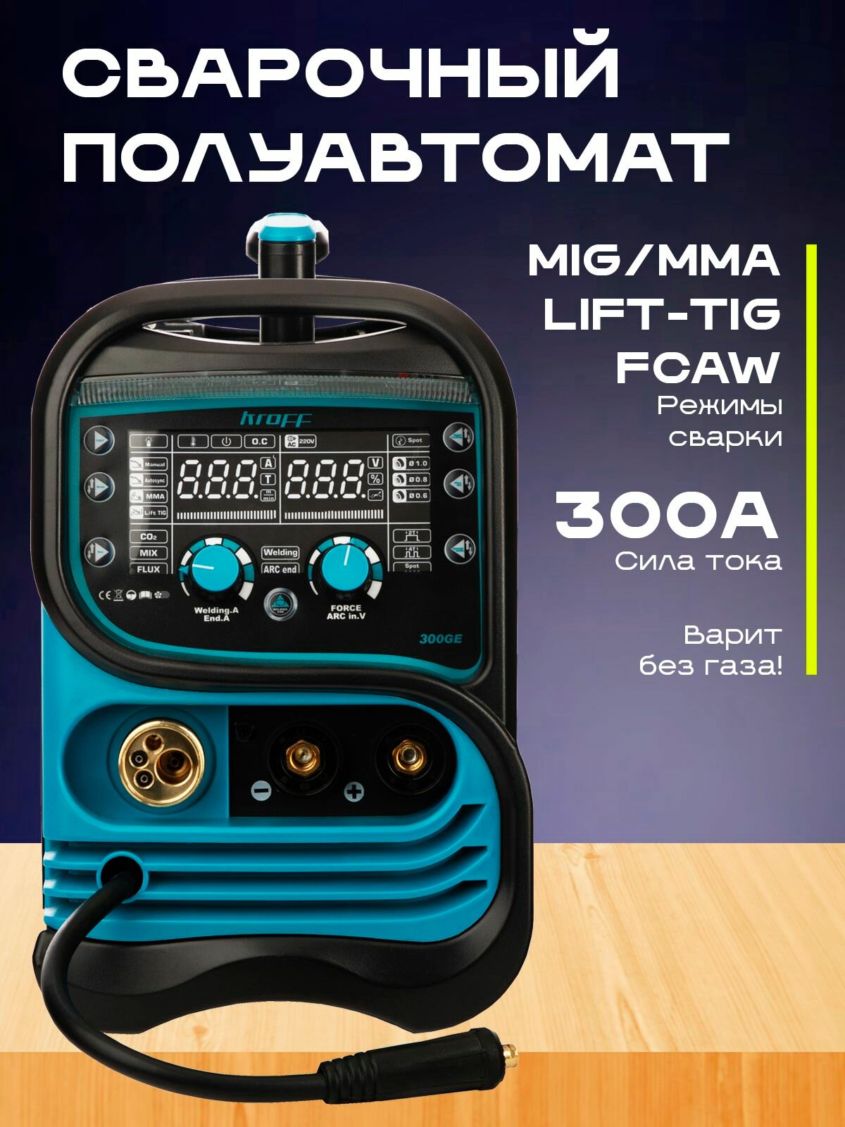 10 цен на Сварочный аппарат полуавтомат Kroff 300GE MIG MMA / Lift-TIG с газом / без газа 300 А, электроды 1.6-4 мм, проволока 0.8-1.0 мм, инверторный аппарат