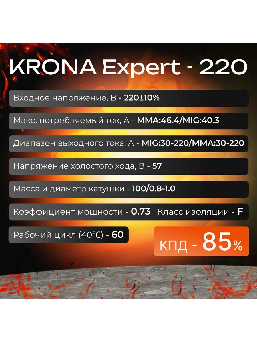 Cварочный полуавтомат без газа KRONA EXPERT MIG-220 информация: