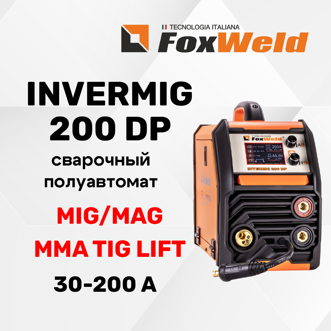 10 цен на Сварочный полуавтомат FoxWeld INVERMIG 200 DP, аргонодуговая TIG, MMA, MIG/MAG