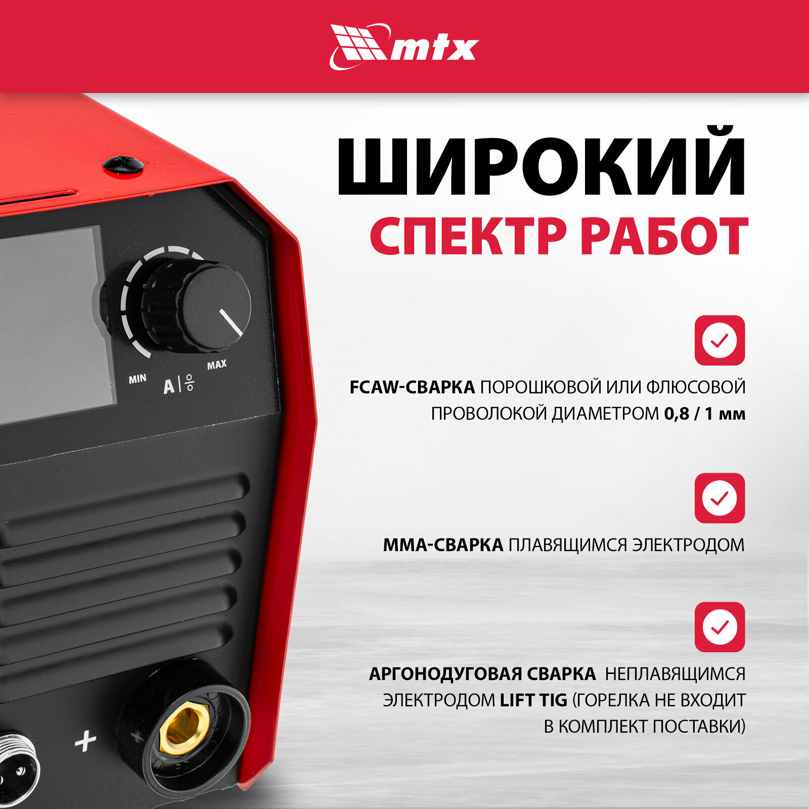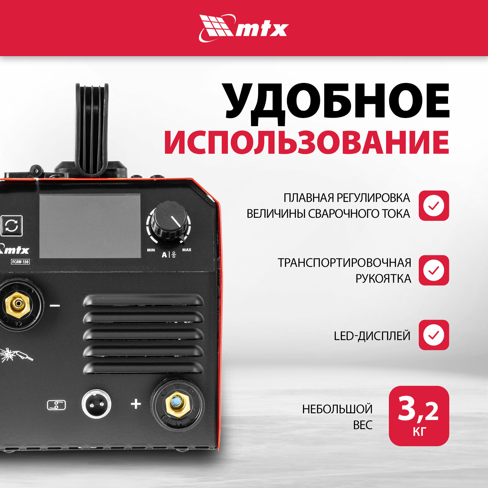 10 цен на Сварочный аппарат-полуавтомат инверторный MTX, FCAW-130, 130 А, ПВ 60%, 94300