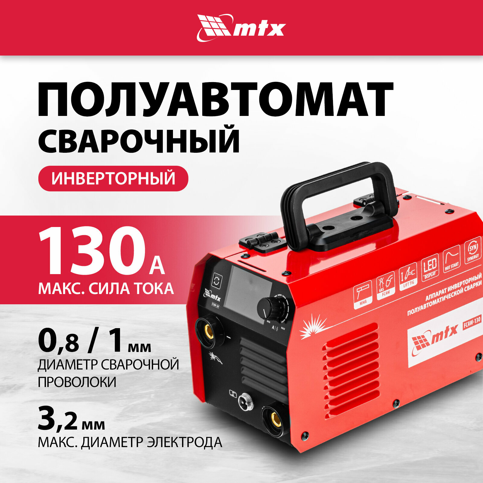 Сварочный аппарат-полуавтомат инверторный MTX, FCAW-130, 130 А, ПВ 60%, 94300 информация: