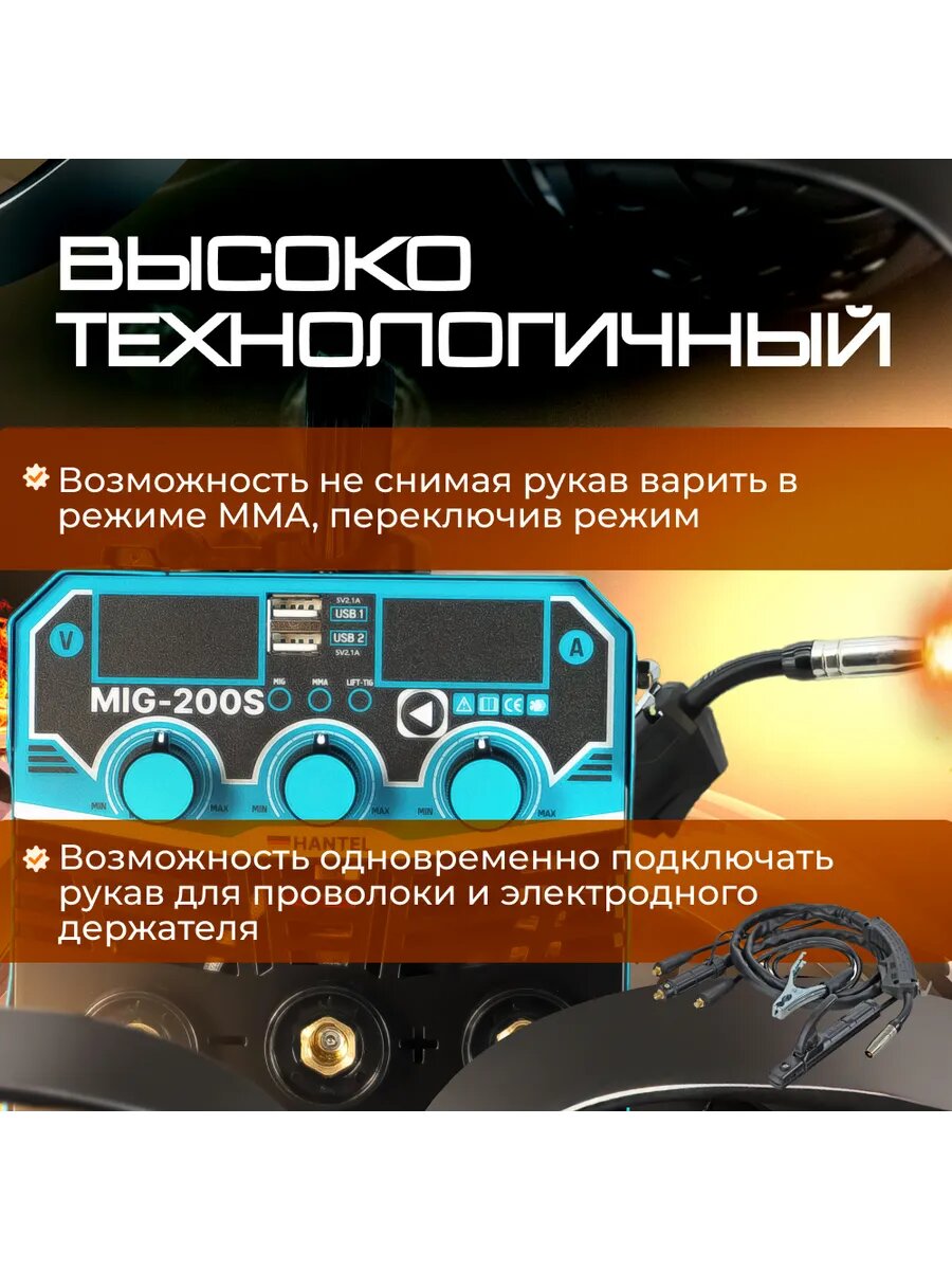 Сварочный полуавтомат инверторный Hantel MIG-200S, без газа, 200A, защита от перегрева информация: