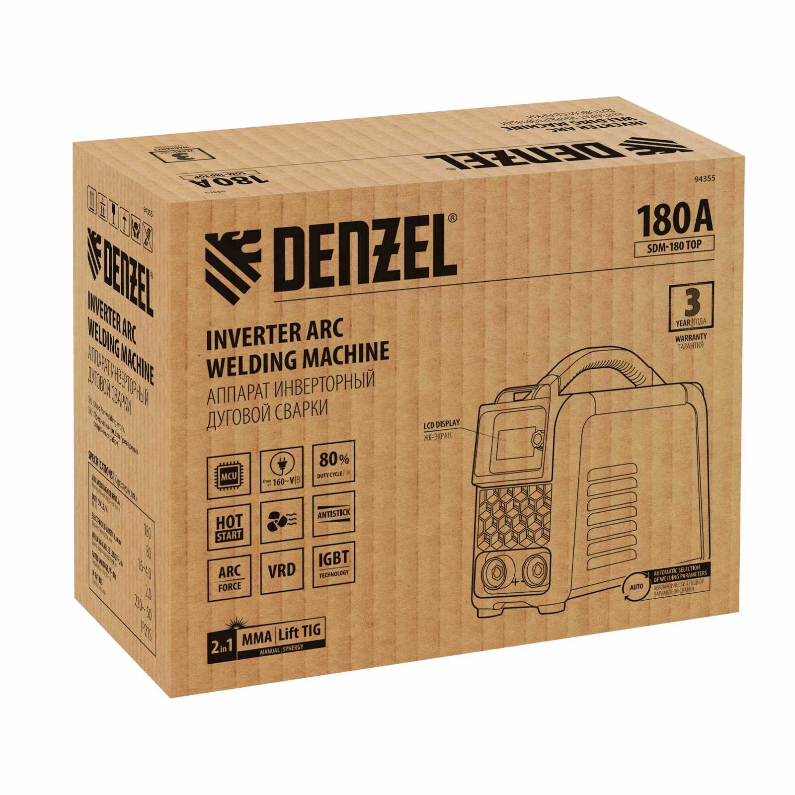 Аппарат инвертор. дуговой сварки DENZEL SDM-180 Top, 180 А, ПВ 80% информация: