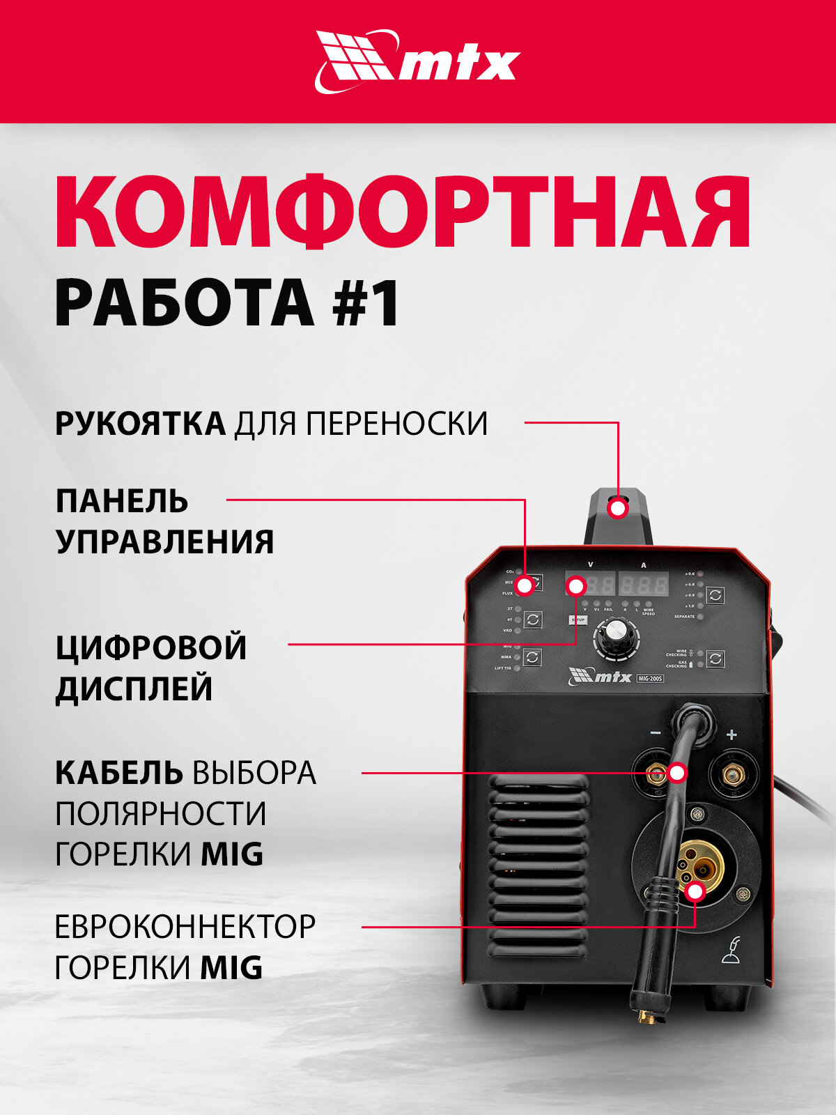 10 цен на Сварочный аппарат-полуавтомат инверторный MTX MIG-200S, 200A, ПВ 60%, катушка 5 кг 94303