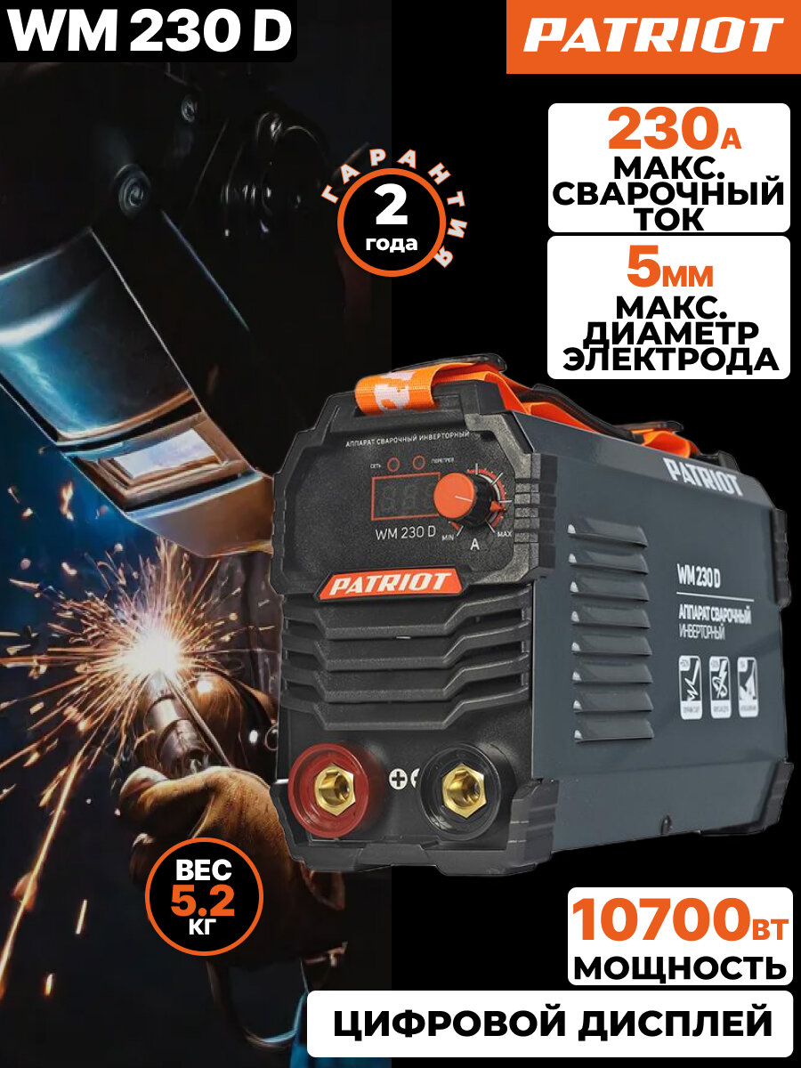 10 цен на Сварочный инвертор PATRIOT 230D, MMA, антиприлипание/горячий старт/форсаж дуги