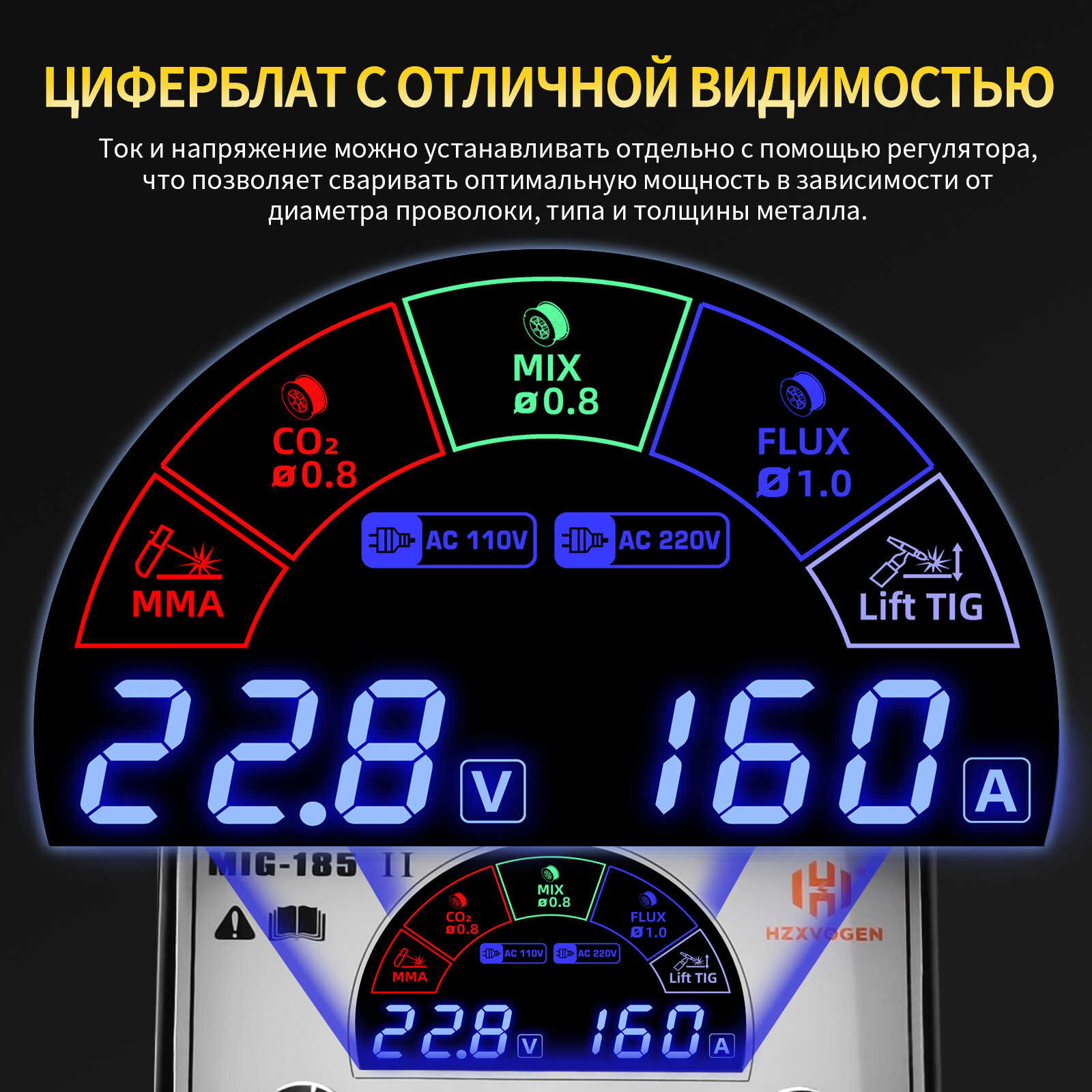 10 цен на Сварочный полуавтомат без газа, с газом HZXVOGEN MIG185-II 4 в 1(ММА/MIG без газа / С газом/LIFT TIG)