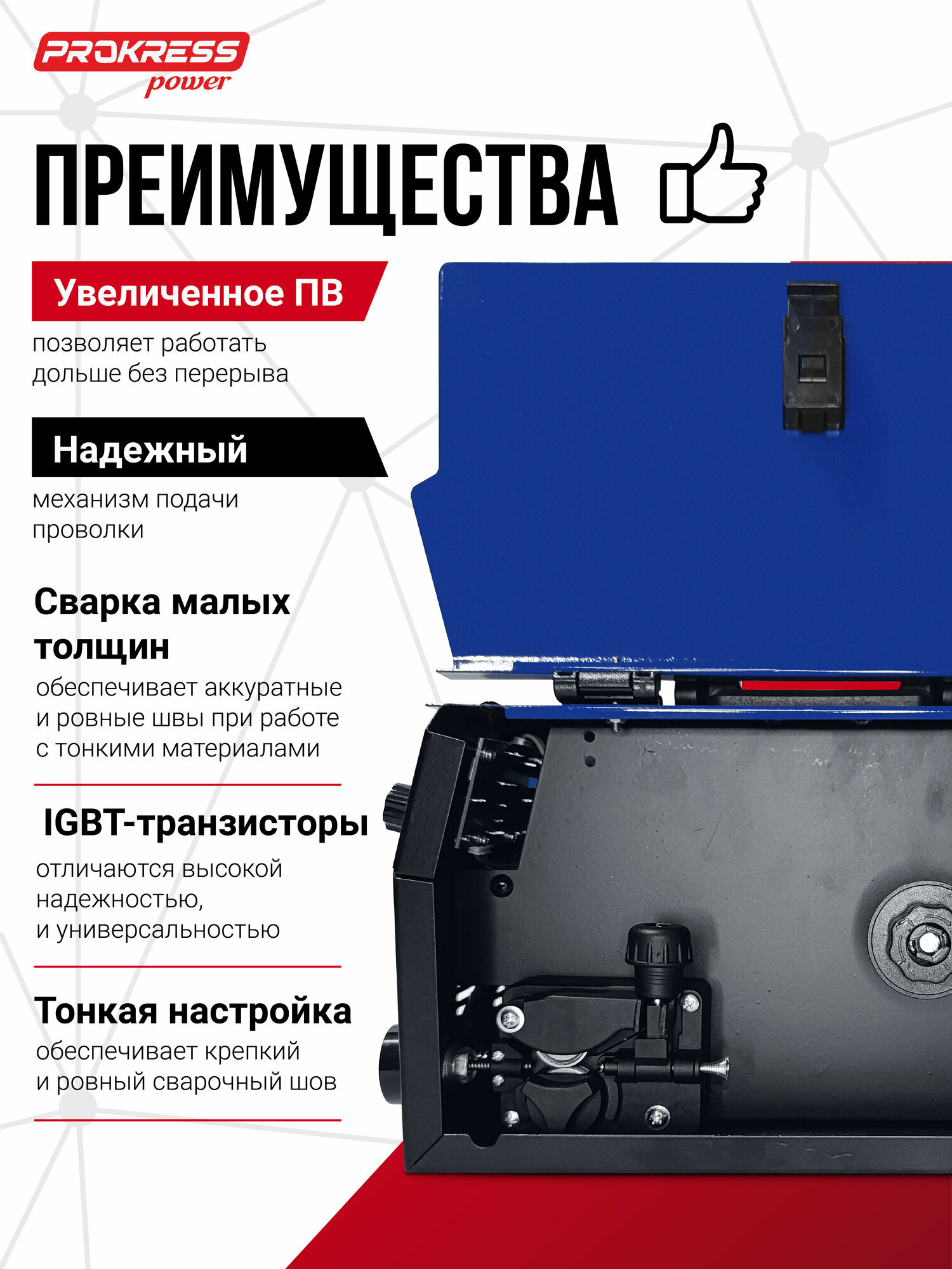 Полуавтомат PROKRESSPOWER PRIME 205 (MIG/MMA 20-205А, без газа, цифровой дисплей, съемная горелка). информация: