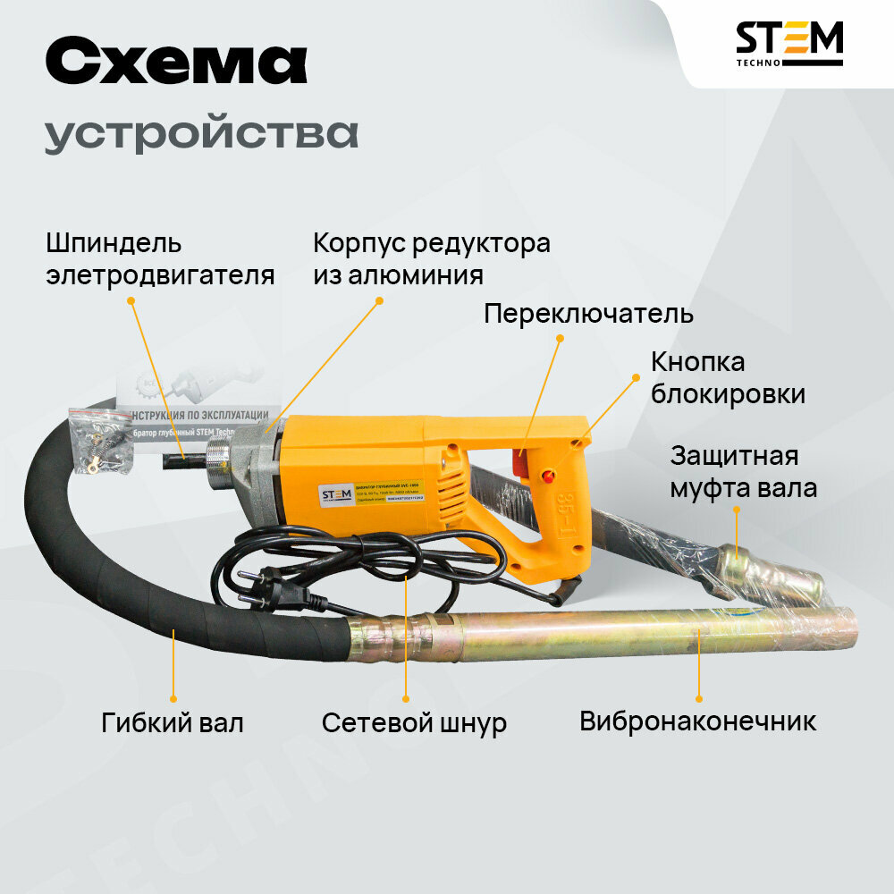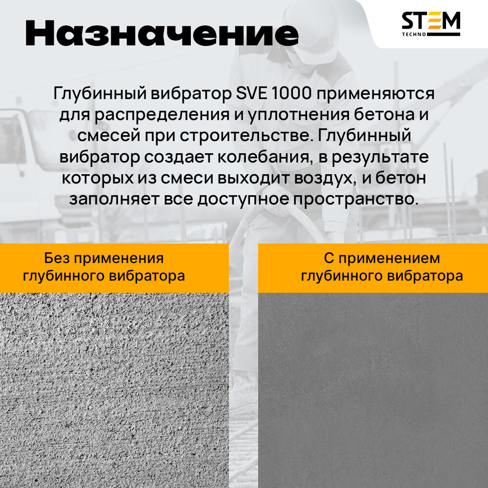 Комплект Глубинный вибратор STEM TECHNO 1000Вт с гибким валом 35х1,5 информация: