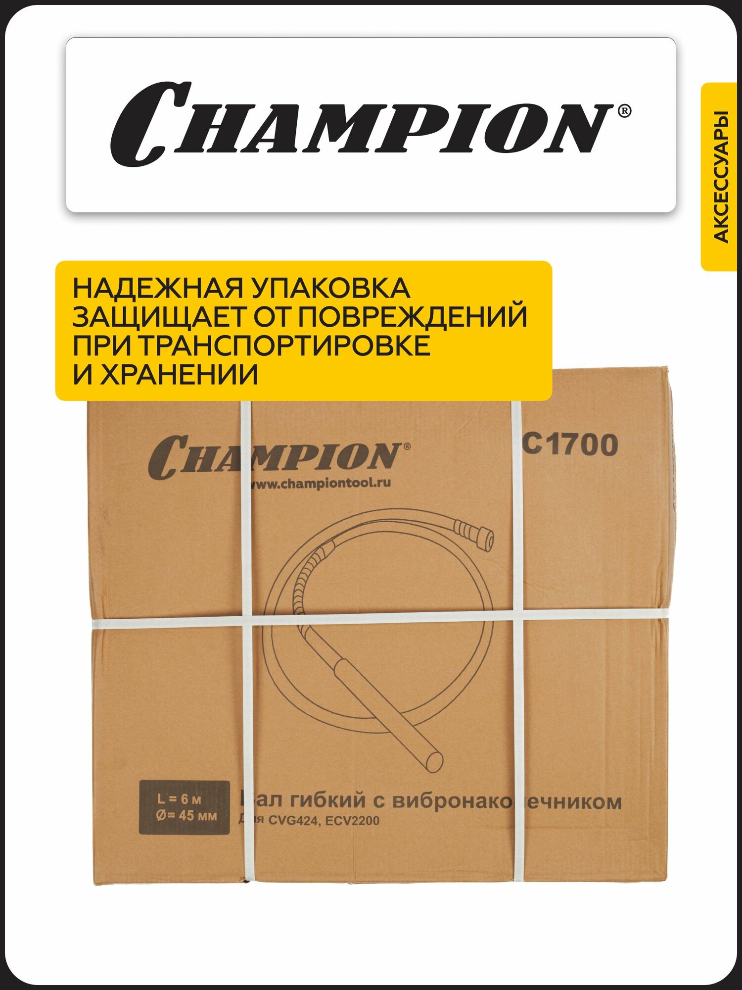 10 цен на Вал гибкий с вибронаконечником CHAMPION (L6m D45mm M тип) для CVG424, ECV2200 C1700
