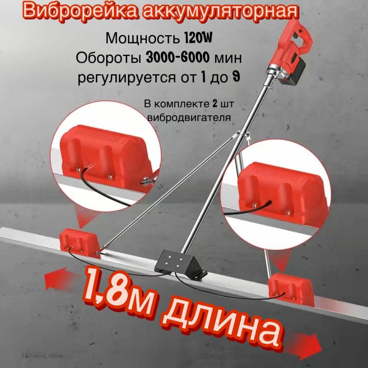 10 цен на Виброрейка аккумуляторная 1,8м, аккумуляторная ширина рейки 80см, сталь без цифрового табло