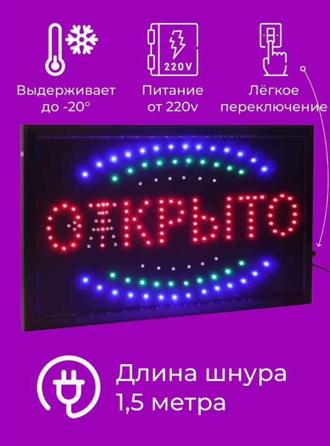 Отзывы на Вывеска светодиодная LED Открыто-Закрыто 48 х 25 см, Табло открыто - закрыто , Вывеска открыто-закрыто