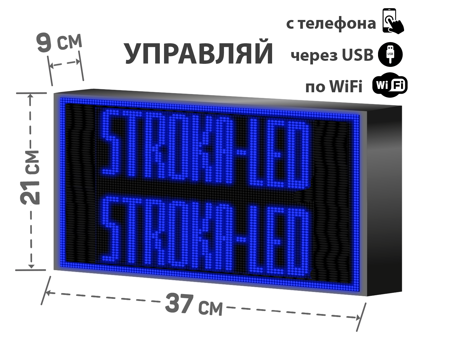 Бегущая строка/ Led /рекламная вывеска/ панель/37х21см /управление с телефона информация: