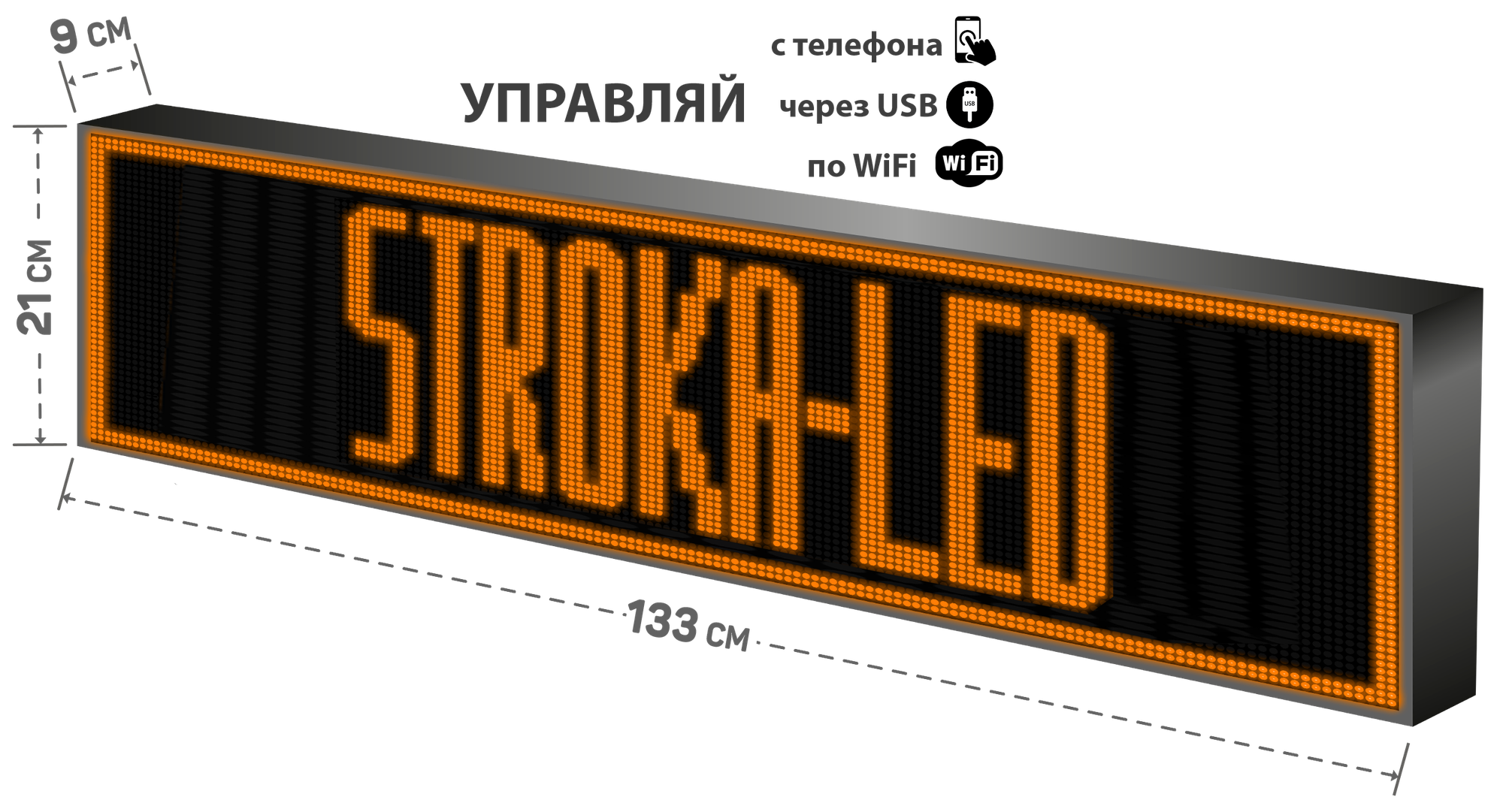 Бегущая строка/ Led /рекламная вывеска/ панель/133х21см /управление с телефона информация: