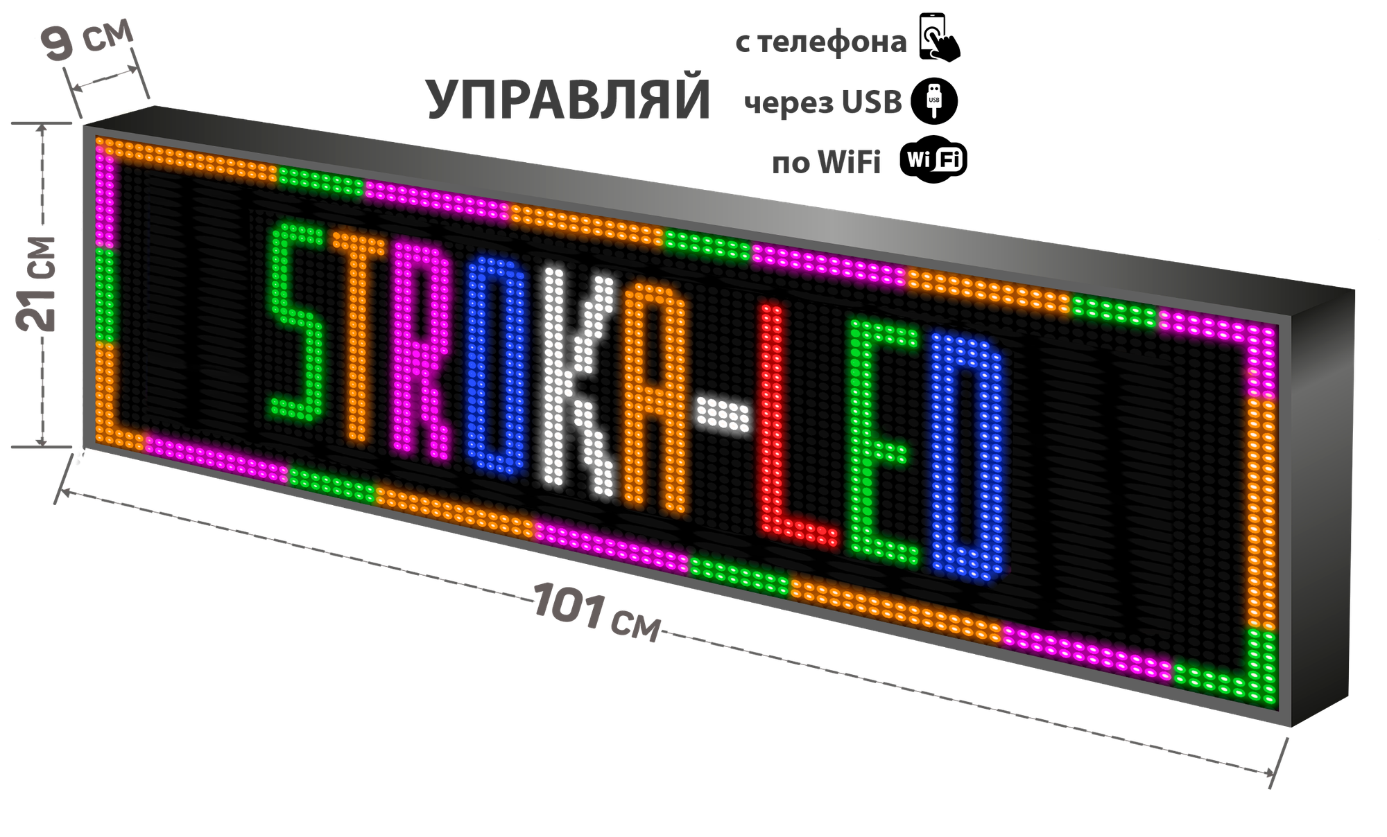 Бегущая строка/ Led /рекламная вывеска/ панель/101х21см /управление с телефона информация: