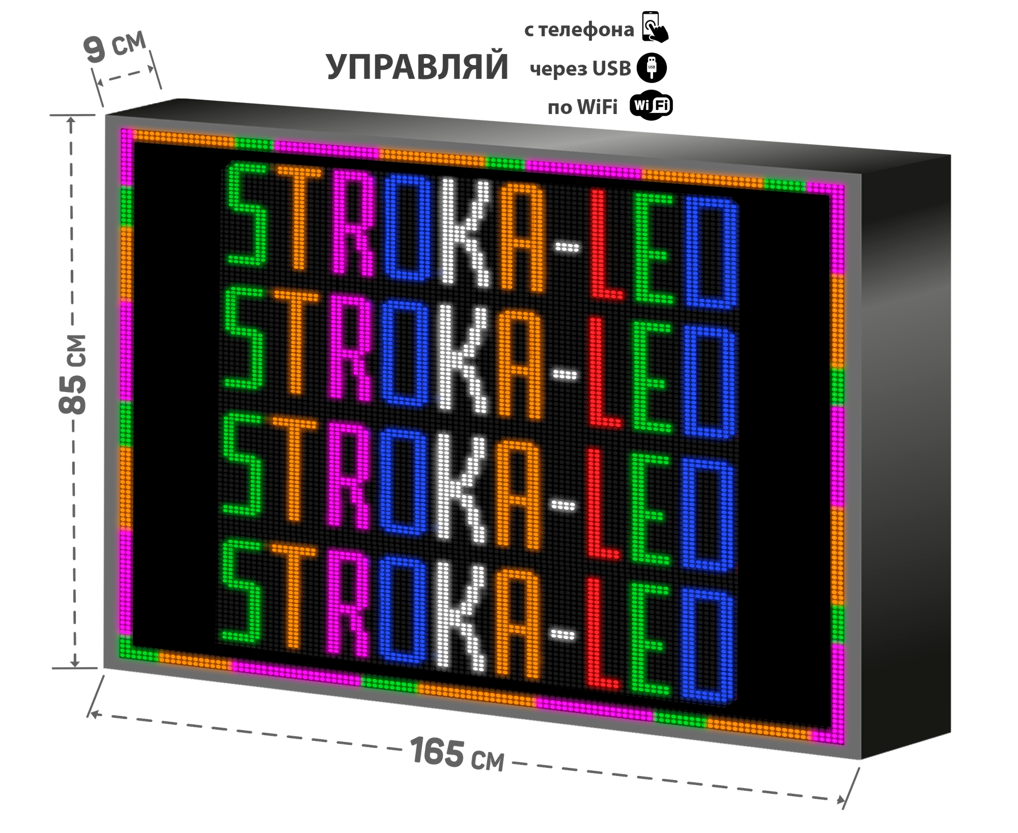 Бегущая строка/ Led /рекламная вывеска/ панель/165х85см /управление с телефона информация: