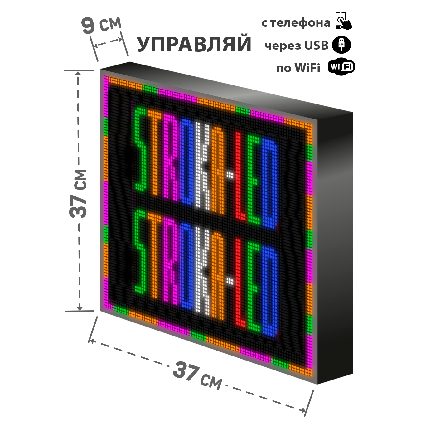 Бегущая строка/ Led /рекламная вывеска/ панель/37х37см /управлением с телефона информация:
