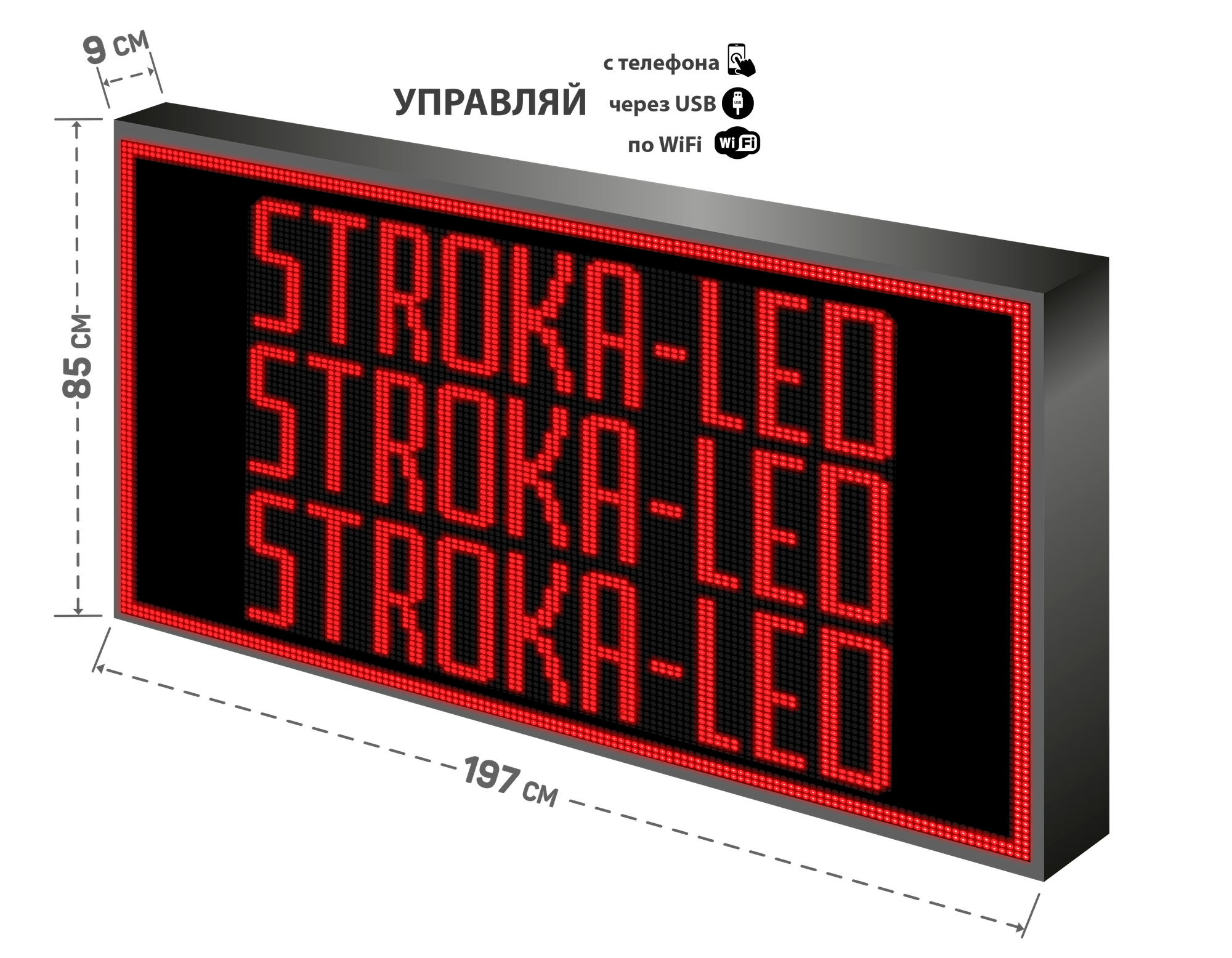 Бегущая строка/ Led /рекламная вывеска/ панель/197х85см /управление с телефона информация: