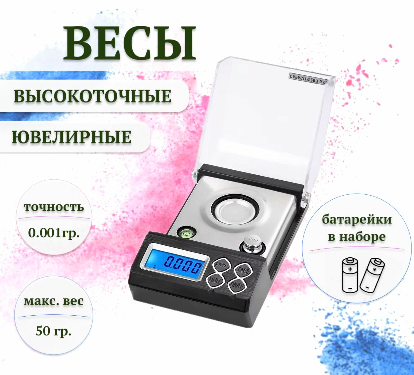 Высокоточные электронные ювелирные весы точность 0.001 гр. максимальный вес 50 гр. информация: