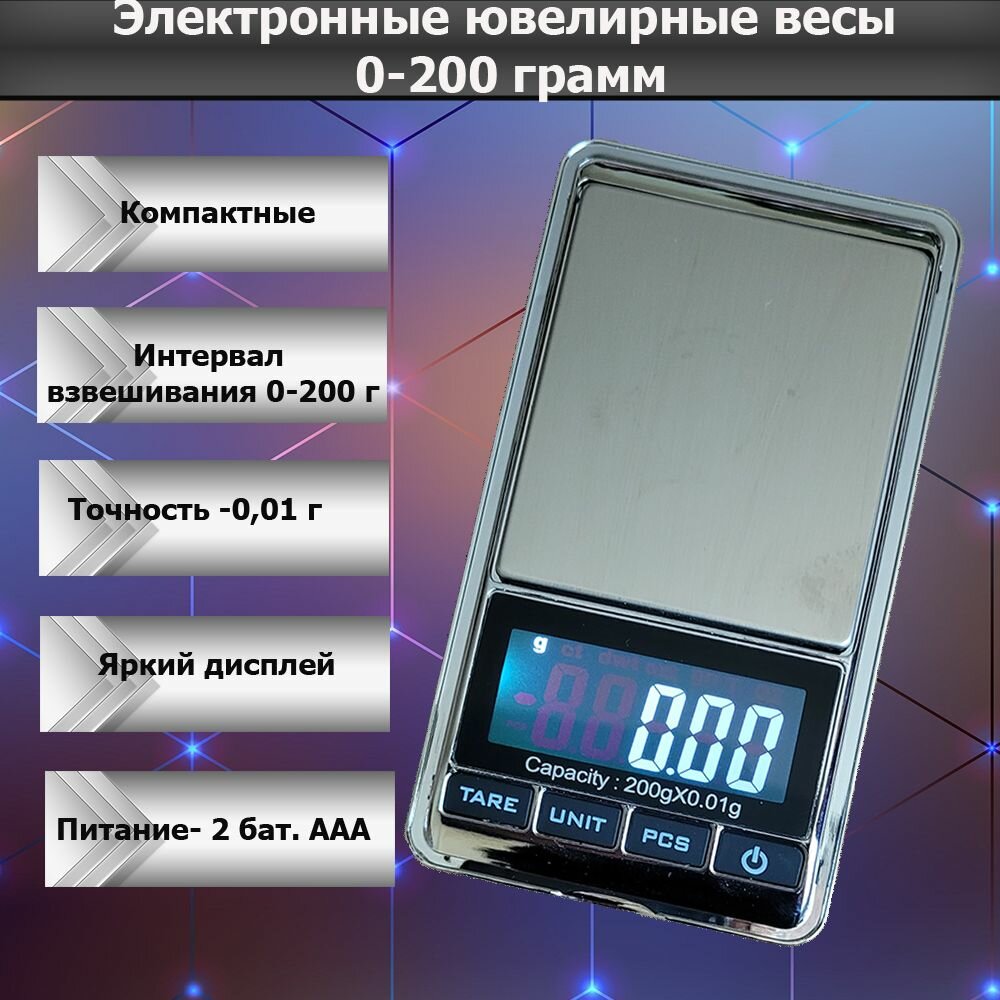 Карманные ювелирные бытовые электронные весы 0-200 грамм, точность-0,01 г информация:
