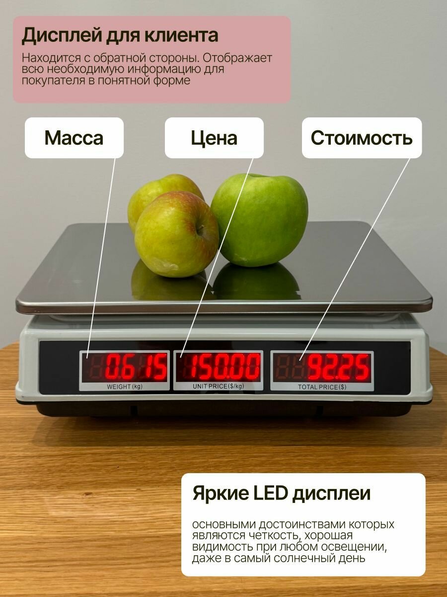 Весы торговые ACS-30 LCD, АКБ, 40кг, 5гр, 330х220, со стойкой. Фасовочные
