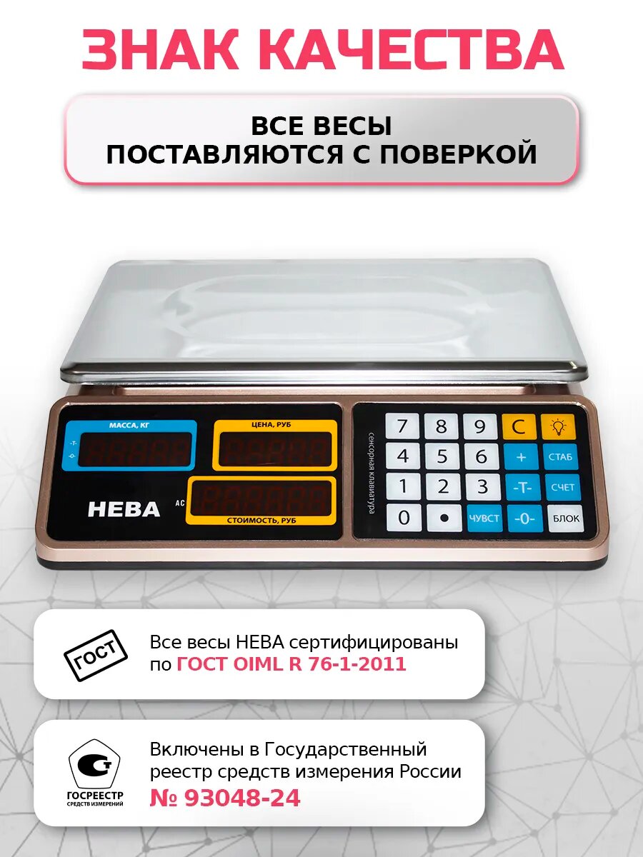 10 цен на Весы торговые НЕВА, 5/25кг, с двумя ЖК-дисплеями и подсветкой, нержавеющая сталь, поверка